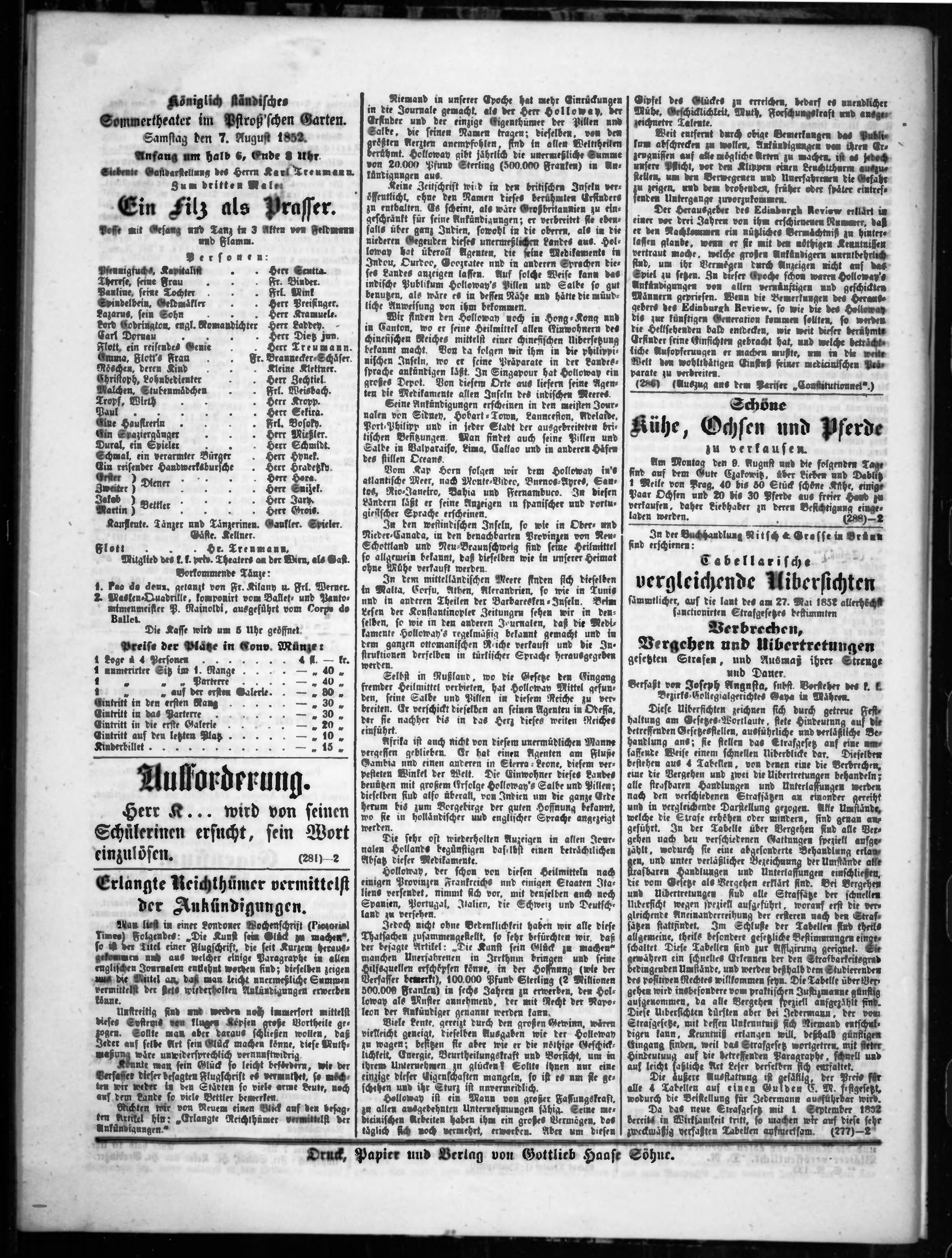 * Datum vydání výtisku: 7.8.1852 Číslo výtisku: 136