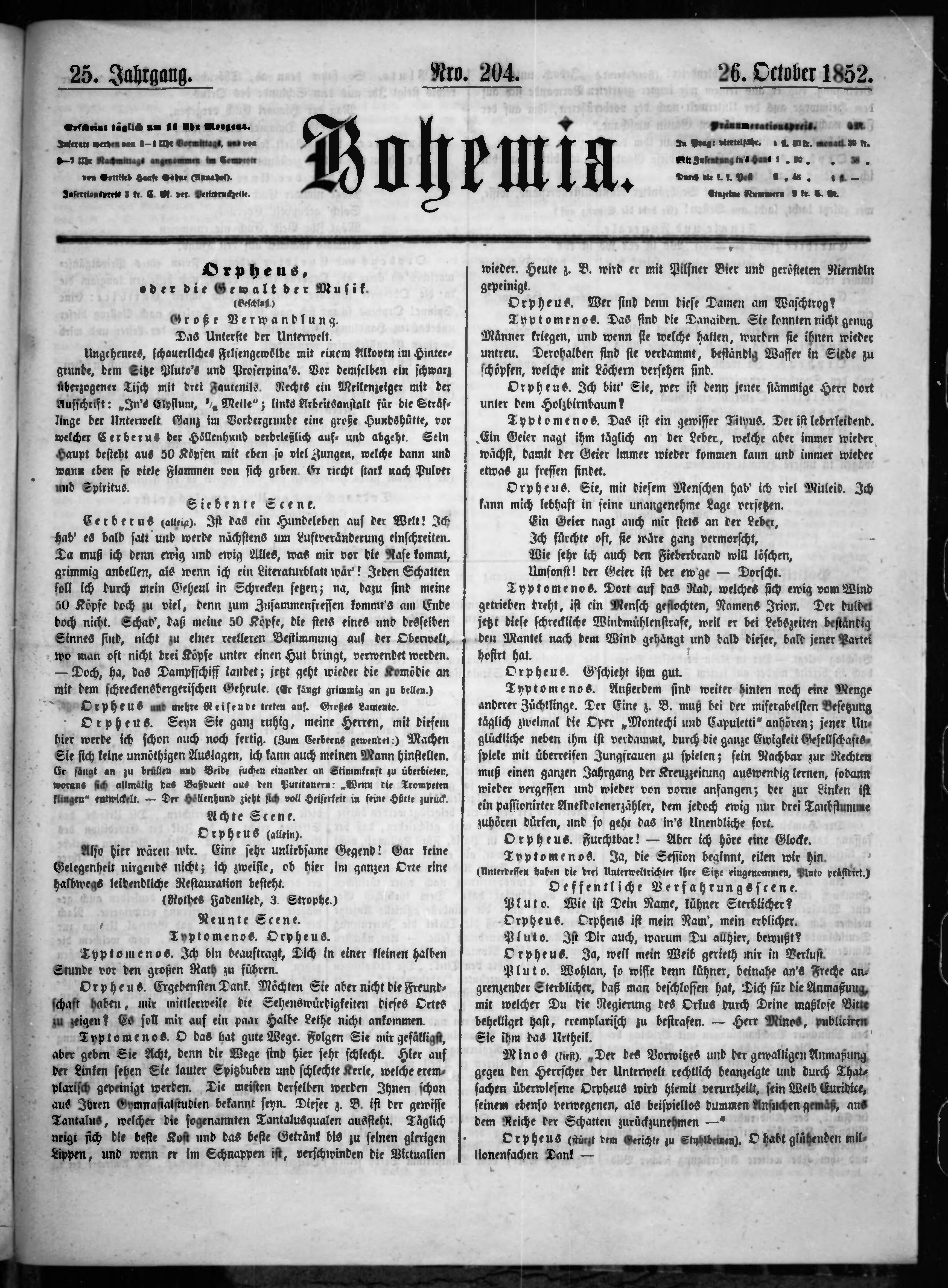 * Datum vydání výtisku: 26.10.1852 Číslo výtisku: 204