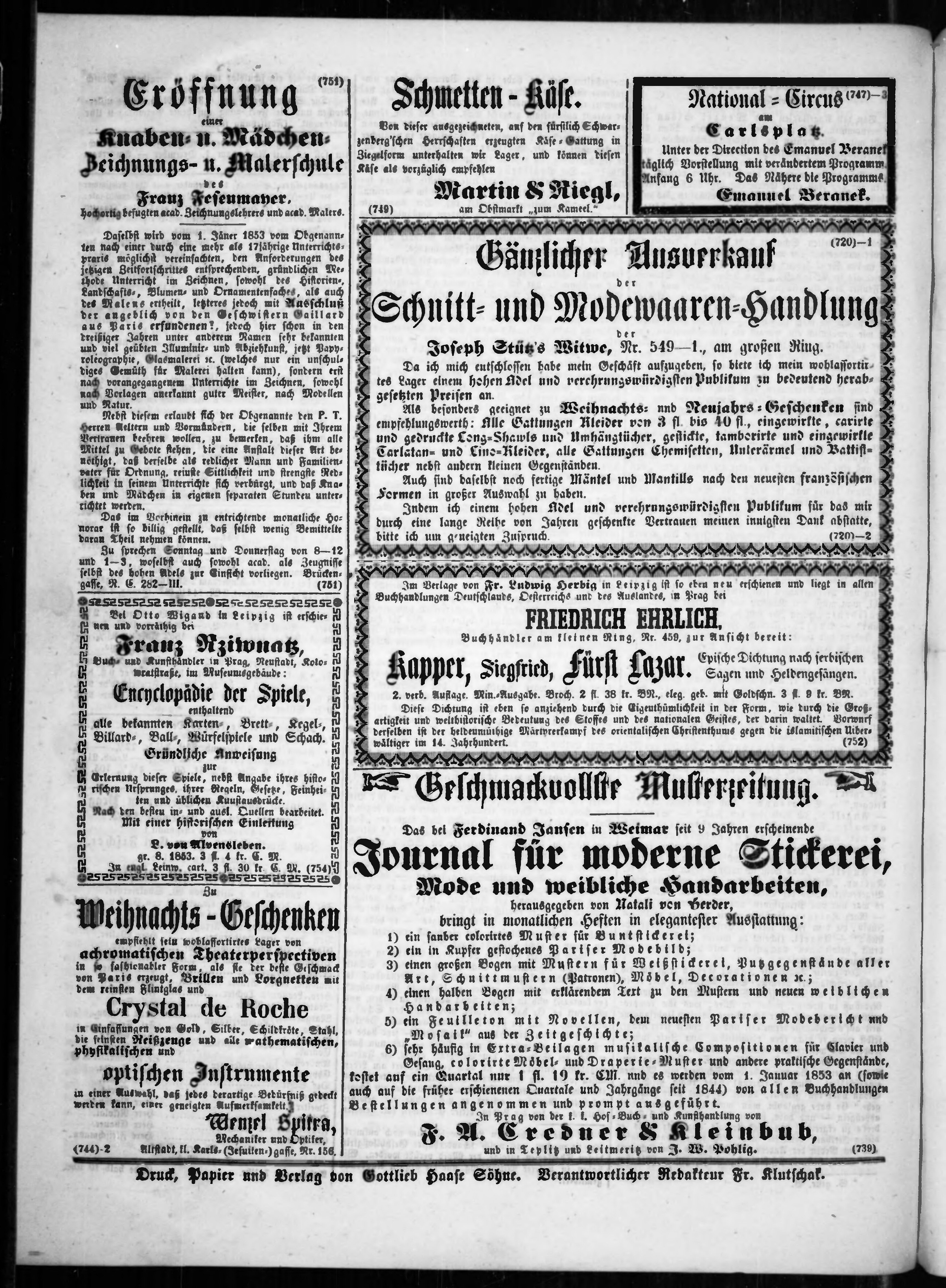 * Datum vydání výtisku: 11.12.1852 Číslo výtisku: 244