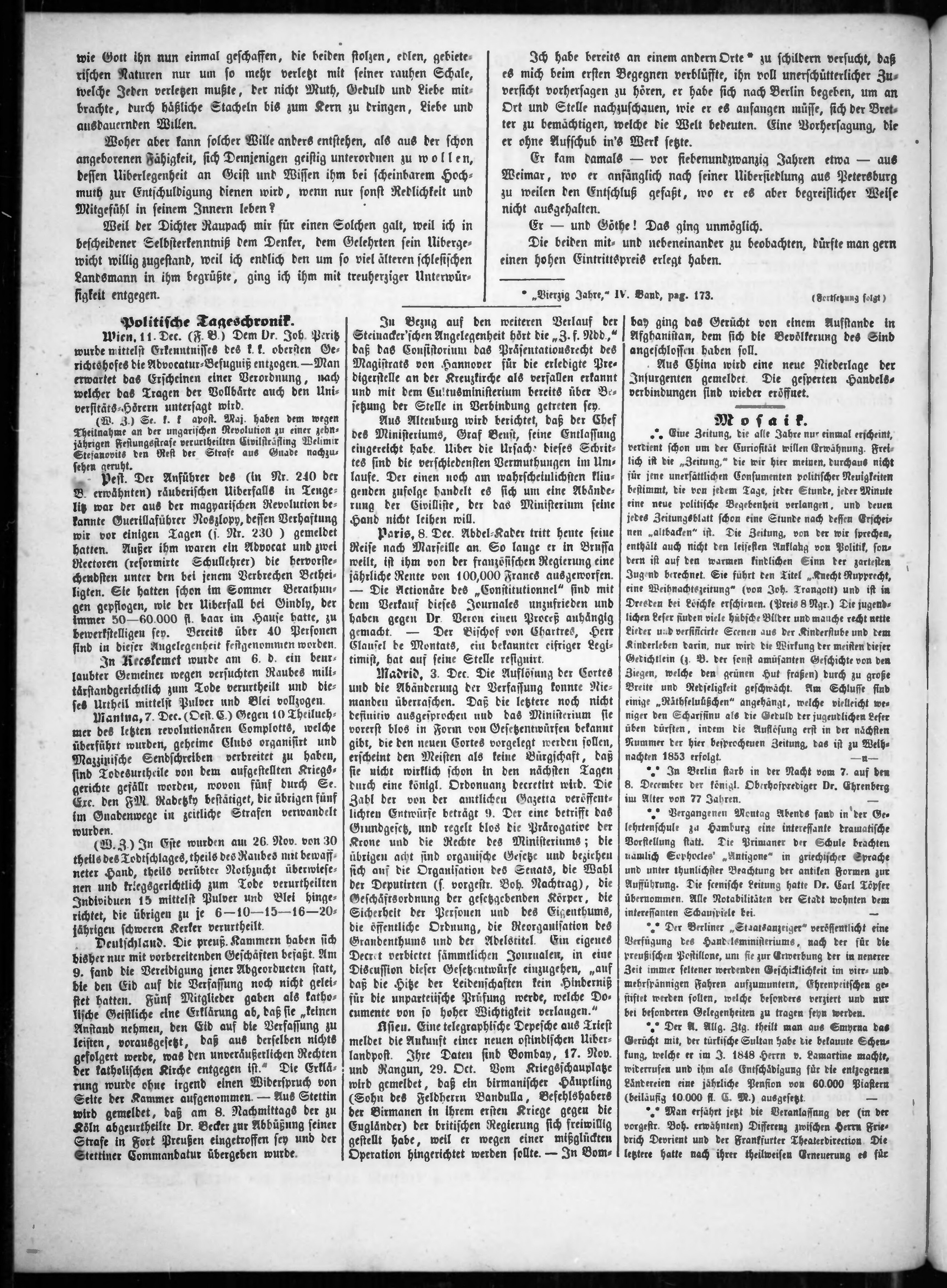 * Datum vydání výtisku: 12.12.1852 Číslo výtisku: 245