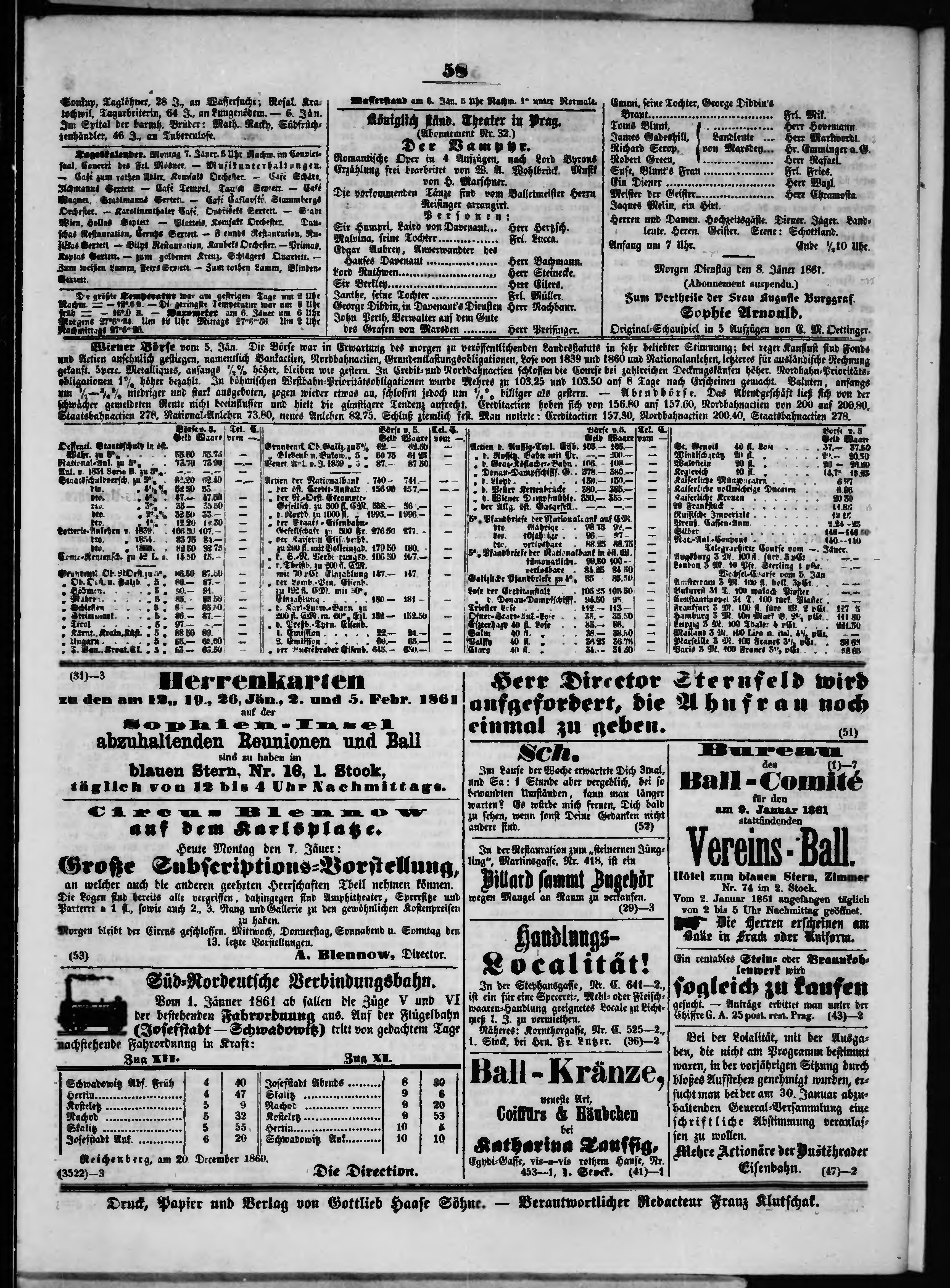 * Datum vydání výtisku: 7.1.1861 Číslo výtisku: 6 Poznámky k výtisku: večerní vydání