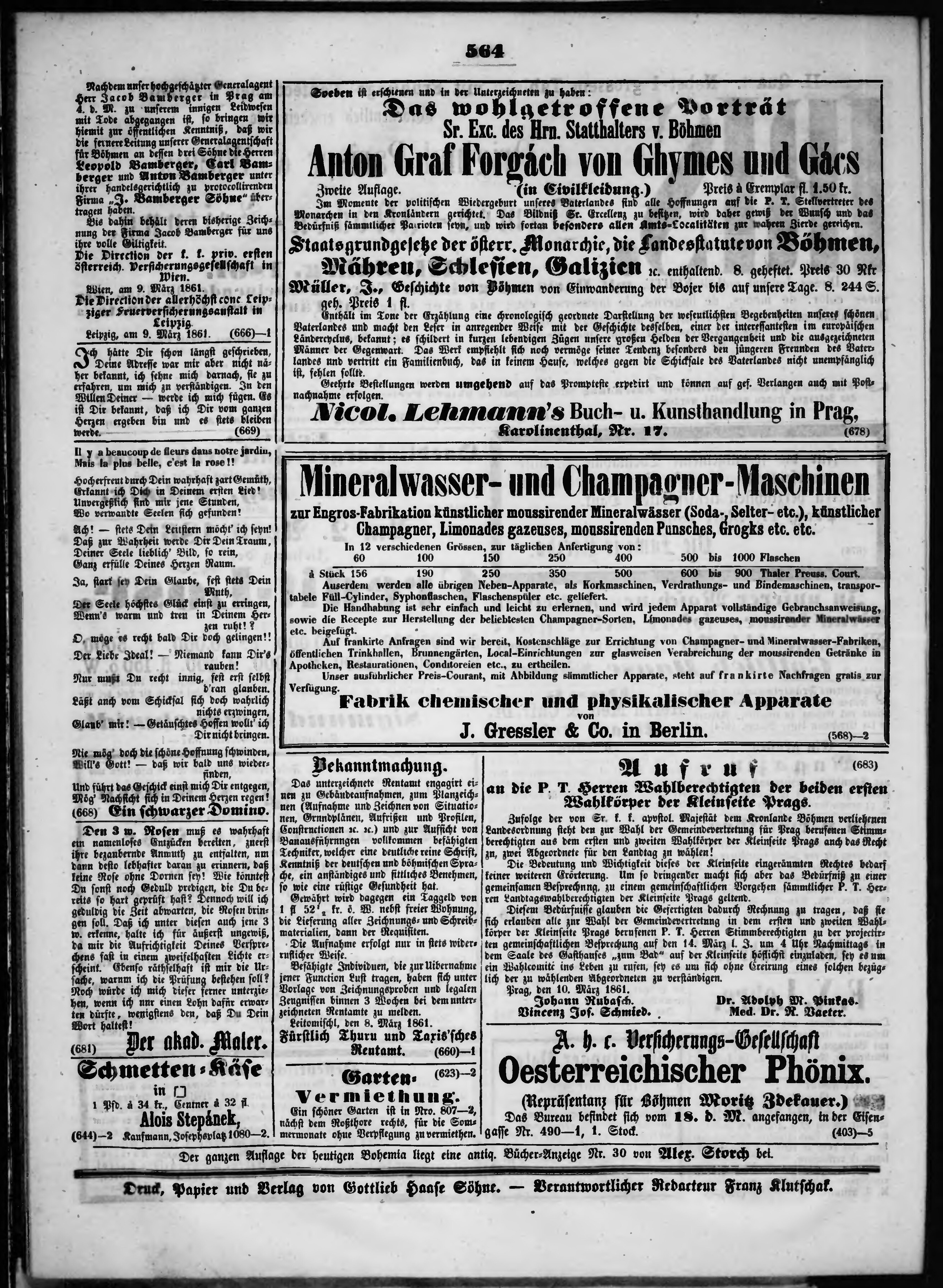 * Datum vydání výtisku: 12.3.1861 Číslo výtisku: 61