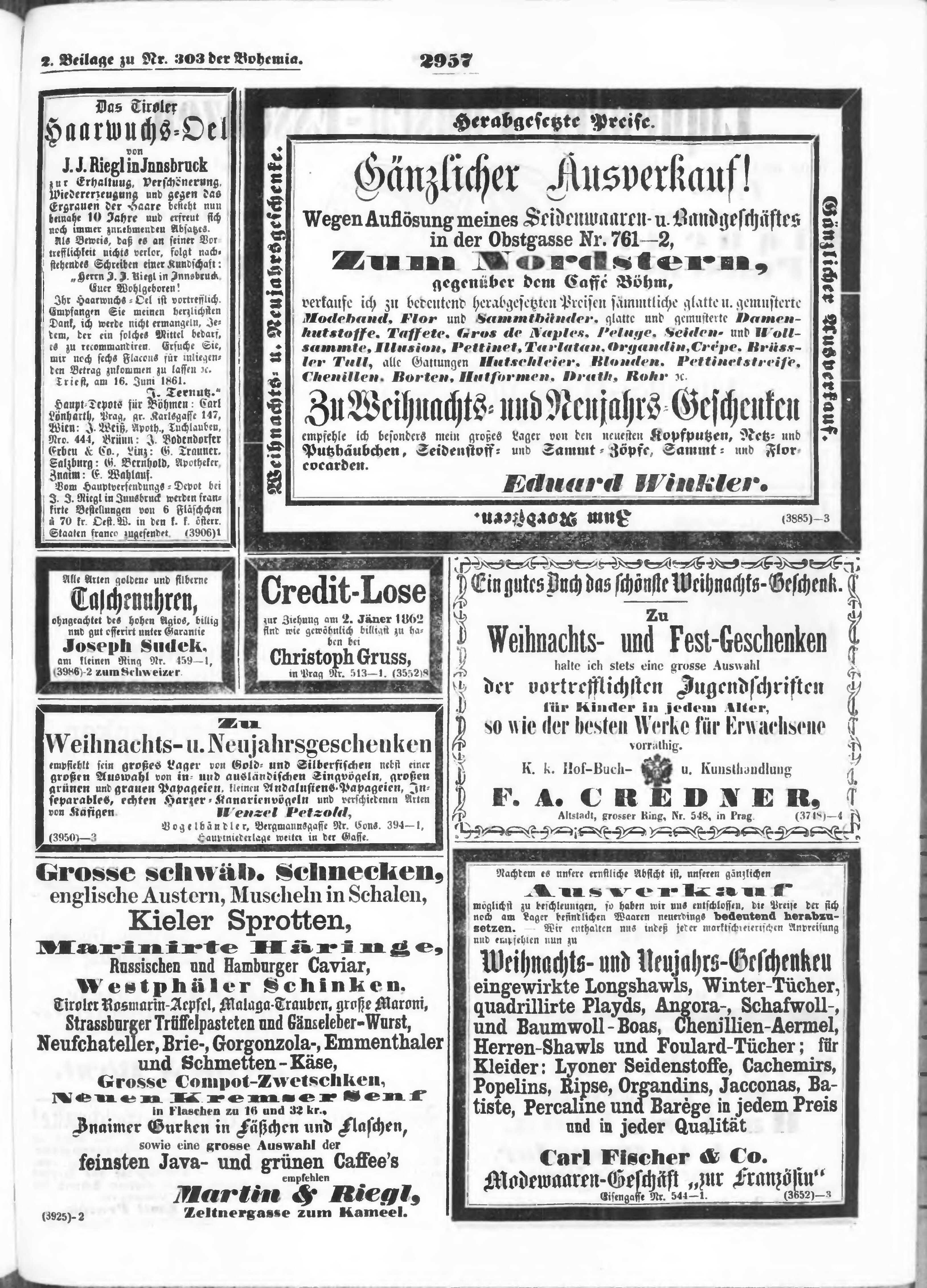 * Datum vydání výtisku: 22.12.1861 Číslo výtisku: 303 Typ výtisku: příloha Poznámky k výtisku: příloha