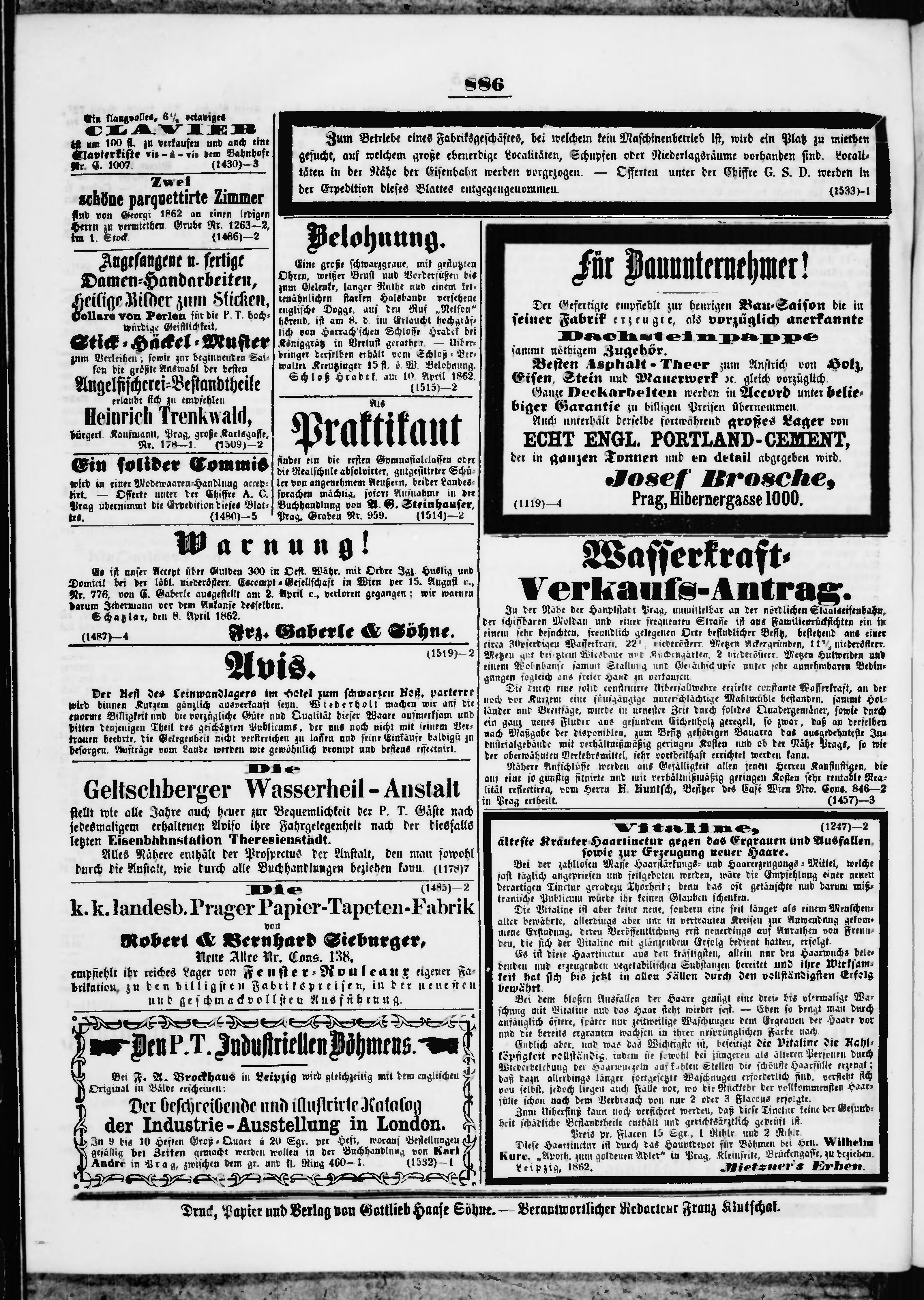 * Datum vydání výtisku: 14.4.1862 Číslo výtisku: 89 Poznámky k výtisku: večerní vydání