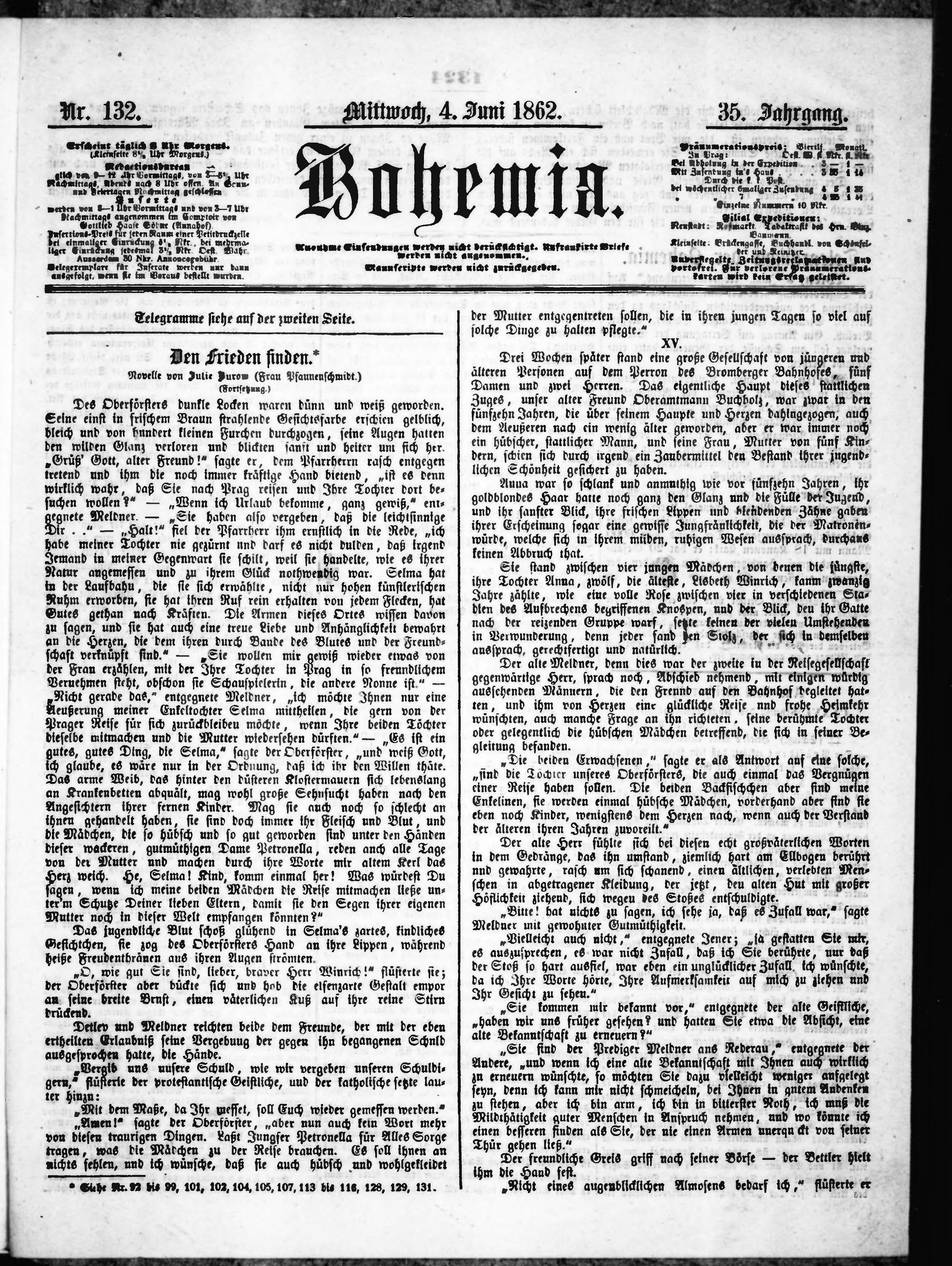 * Datum vydání výtisku: 4.6.1862 Číslo výtisku: 132