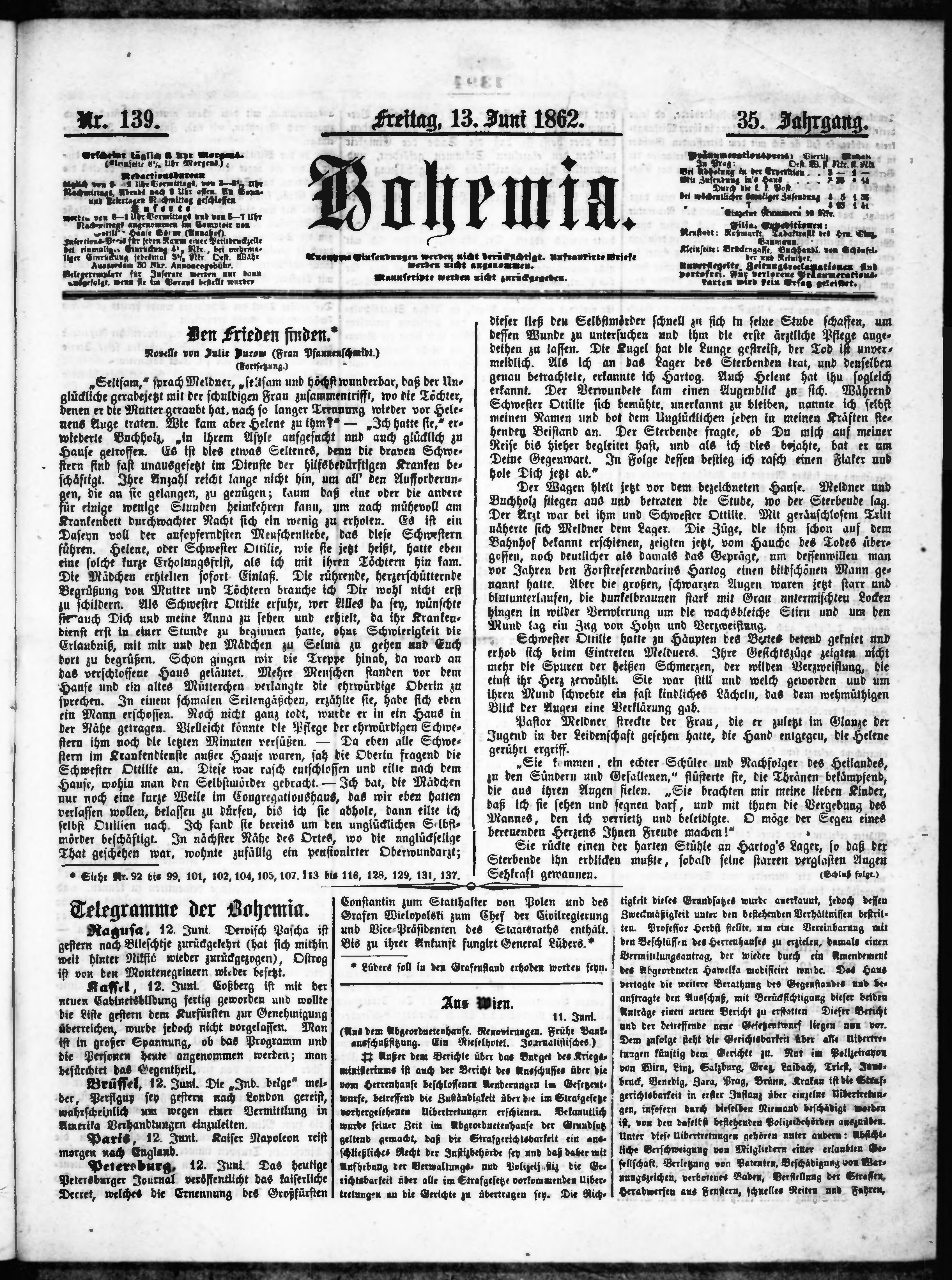 * Datum vydání výtisku: 13.6.1862 Číslo výtisku: 139