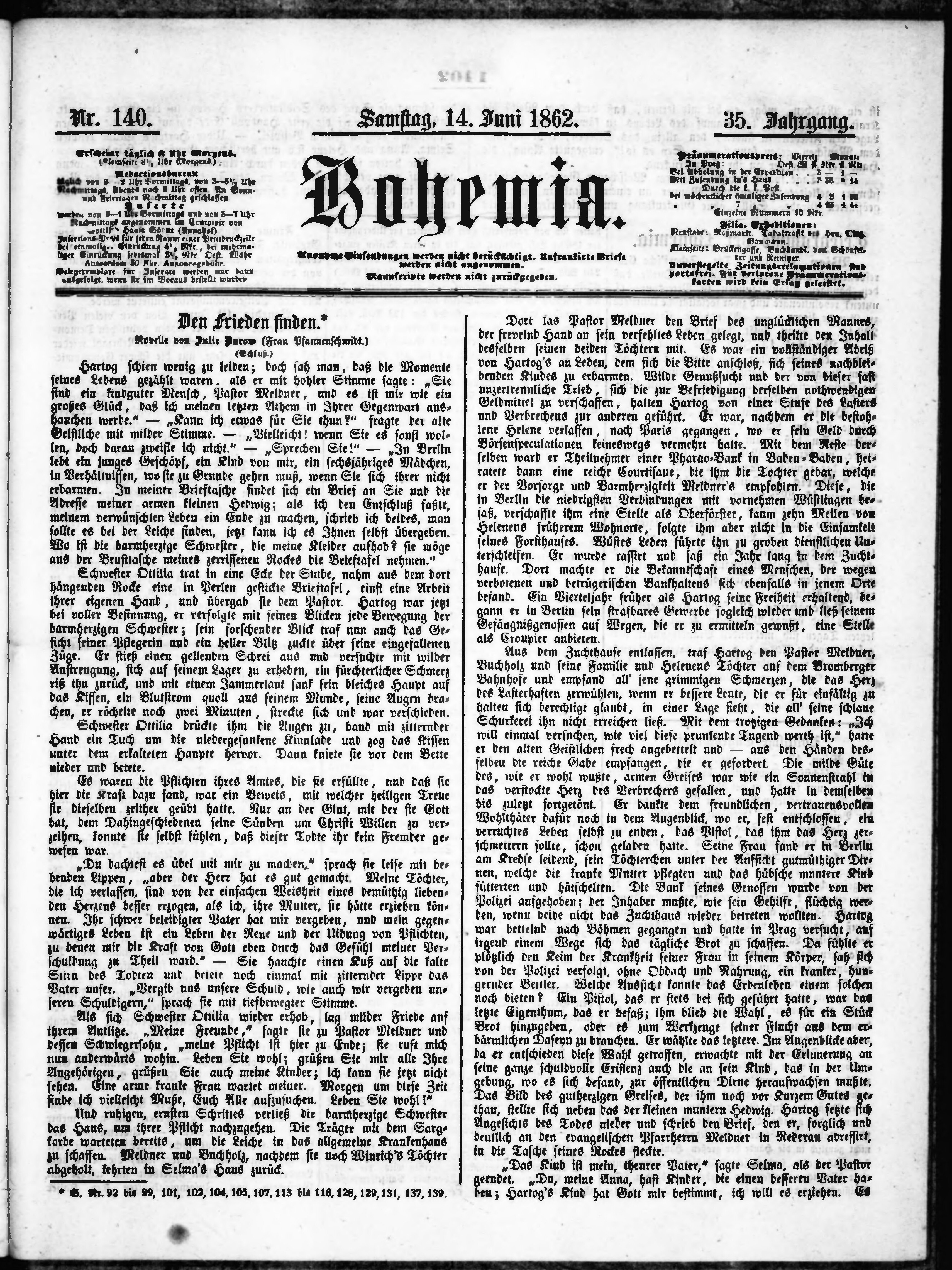 * Datum vydání výtisku: 14.6.1862 Číslo výtisku: 140