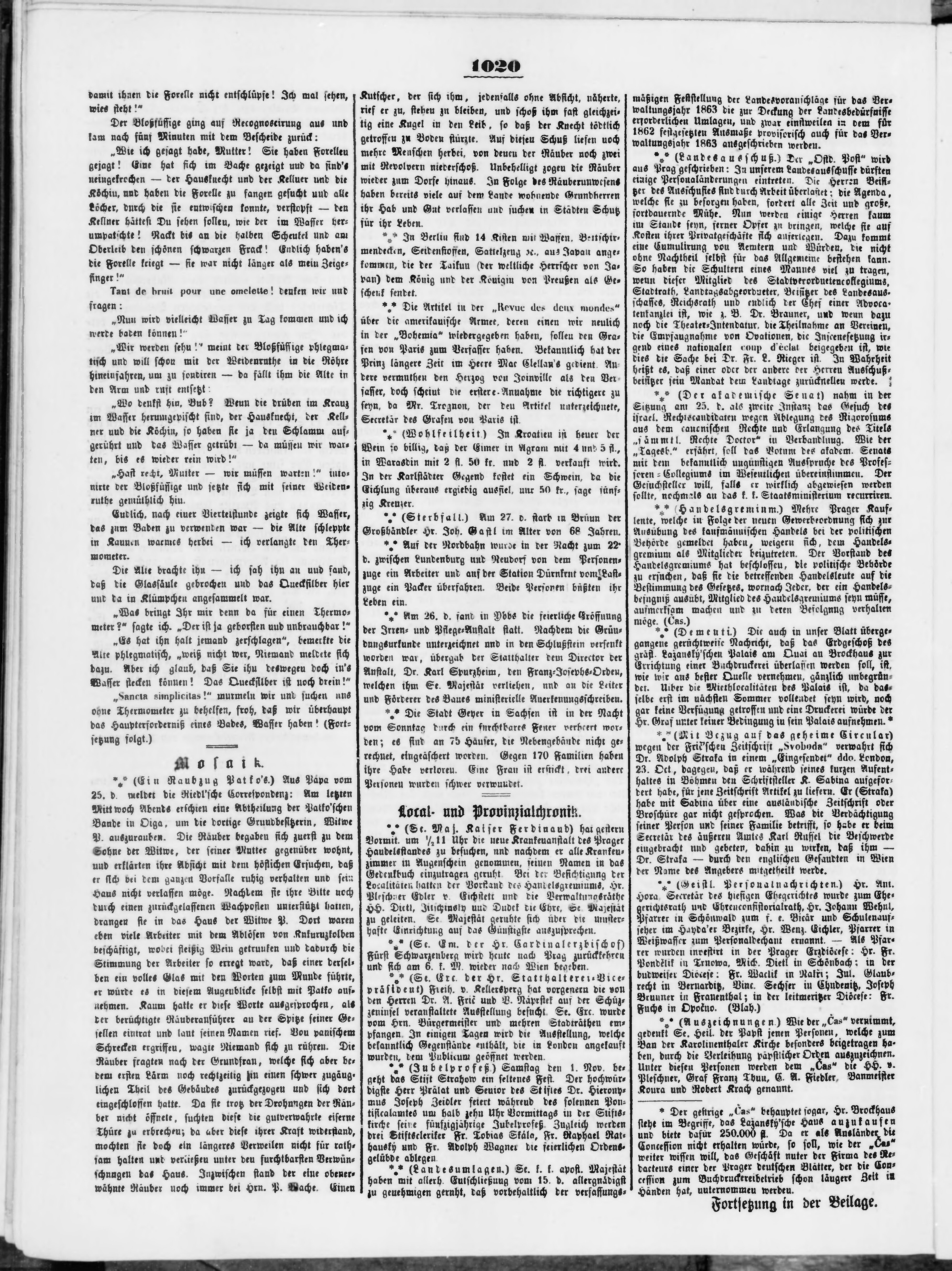 * Datum vydání výtisku: 29.10.1862 Číslo výtisku: 256