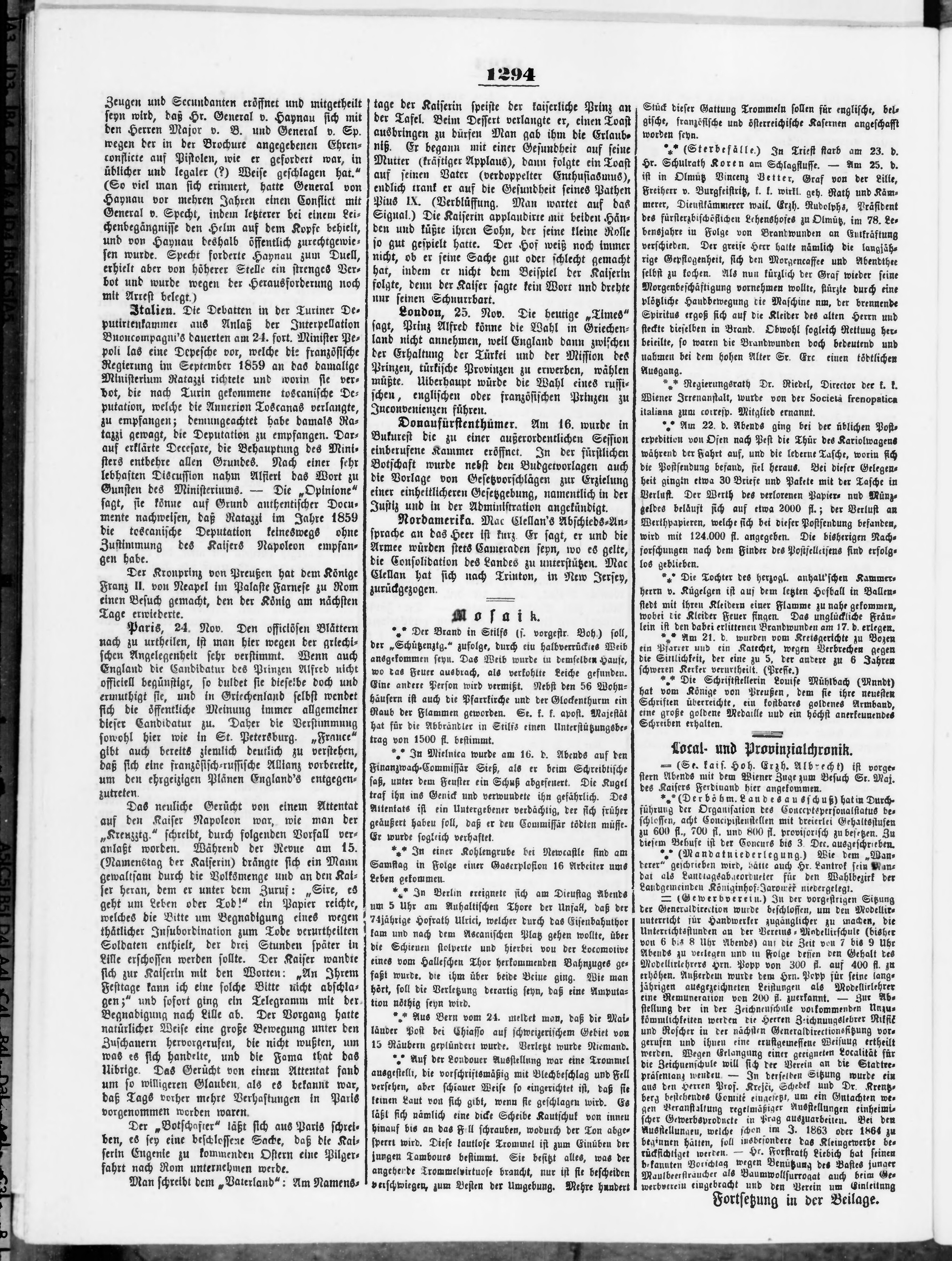 * Datum vydání výtisku: 27.11.1862 Číslo výtisku: 281