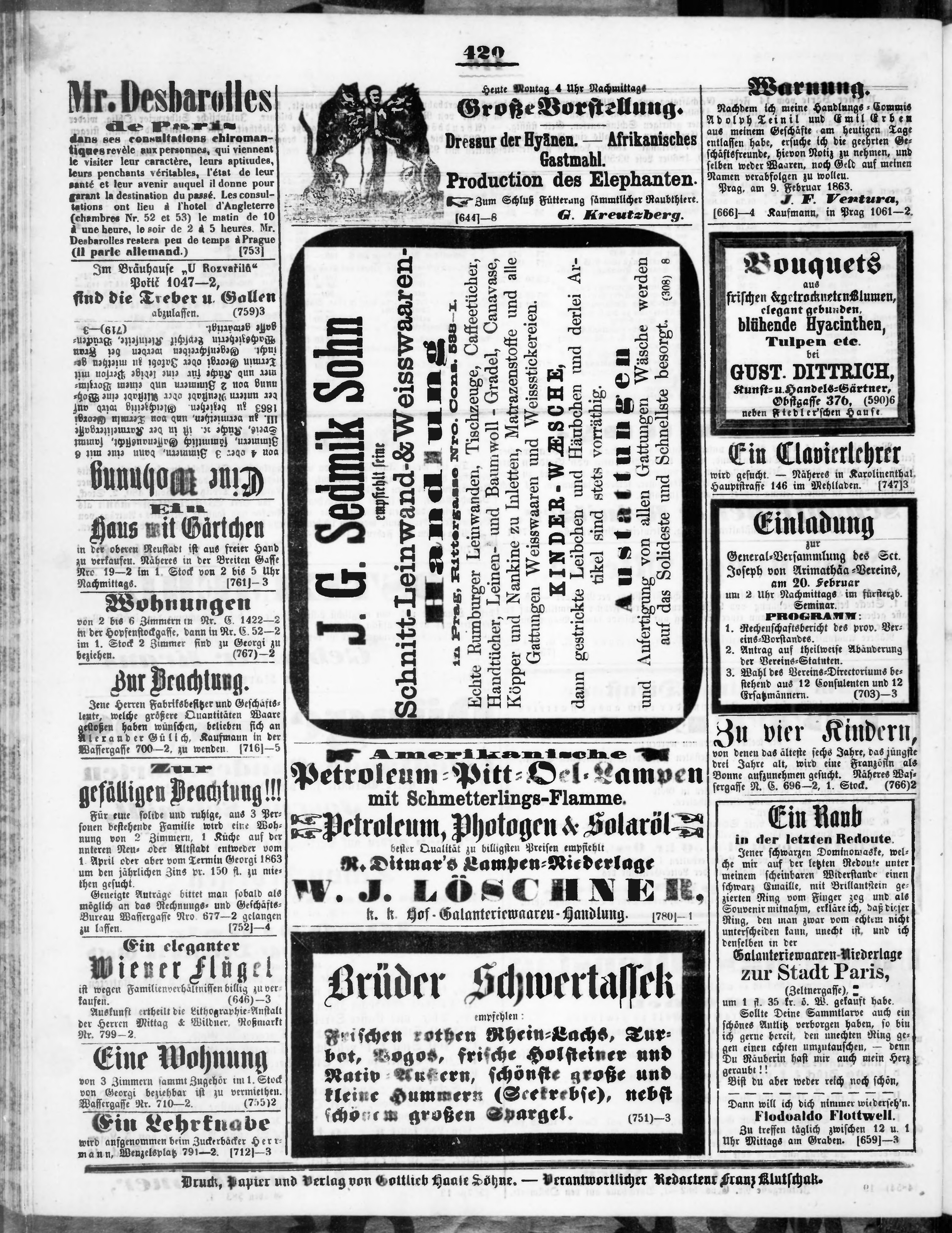 * Datum vydání výtisku: 16.2.1863 Číslo výtisku: 40 Poznámky k výtisku: večerní vydání