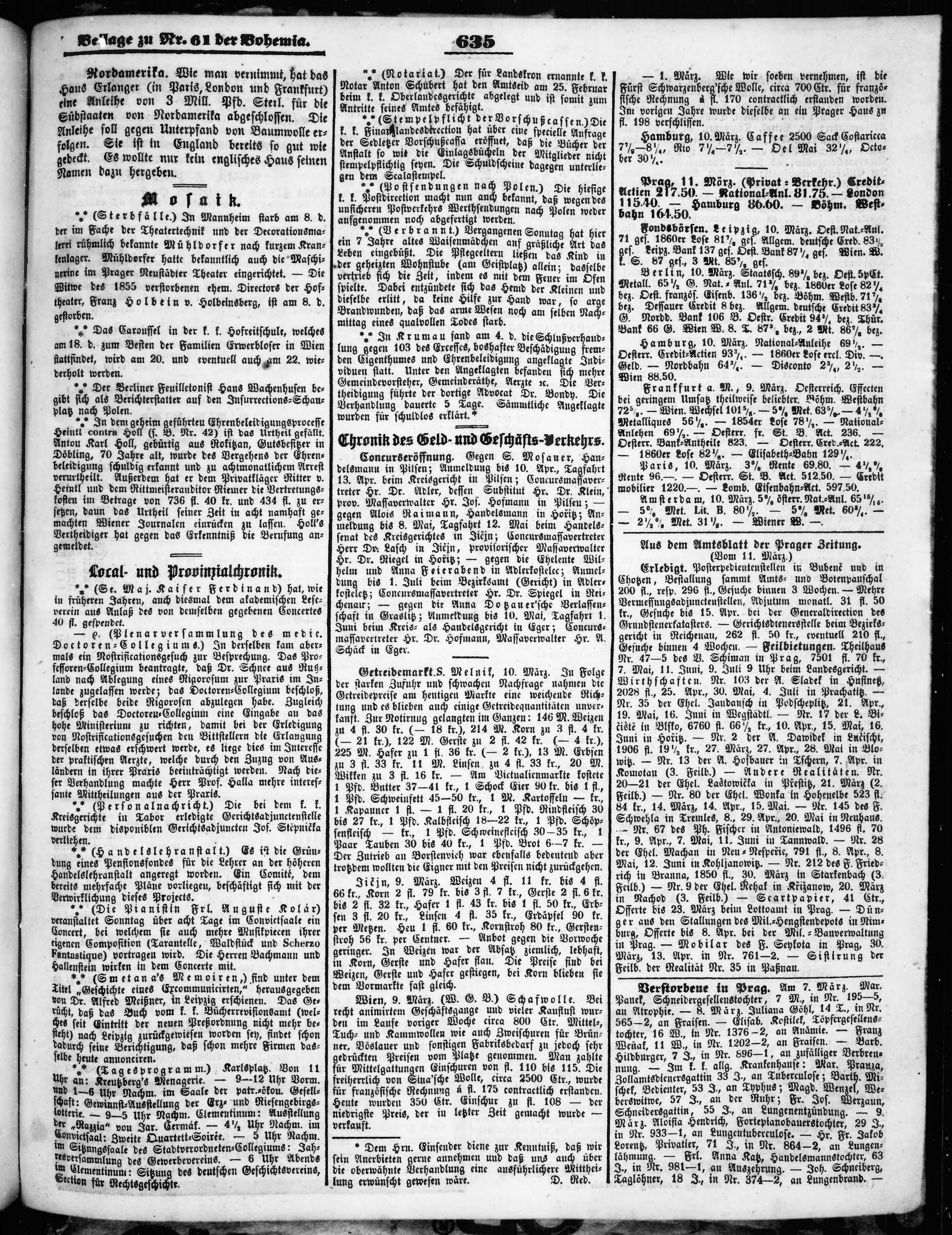 * Datum vydání výtisku: 12.3.1863 Číslo výtisku: 61 Typ výtisku: příloha Poznámky k výtisku: příloha
