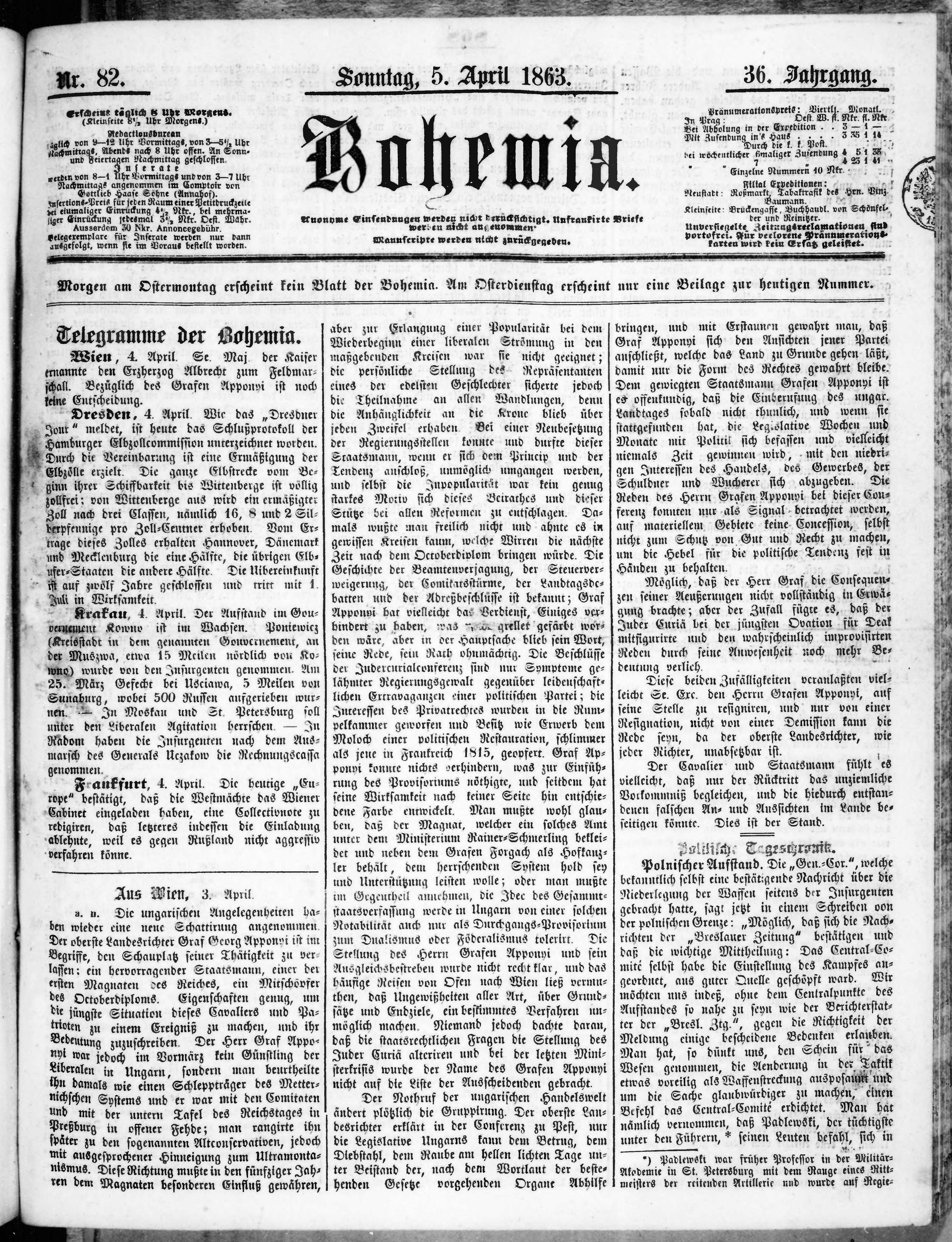 * Datum vydání výtisku: 5.4.1863 Číslo výtisku: 82