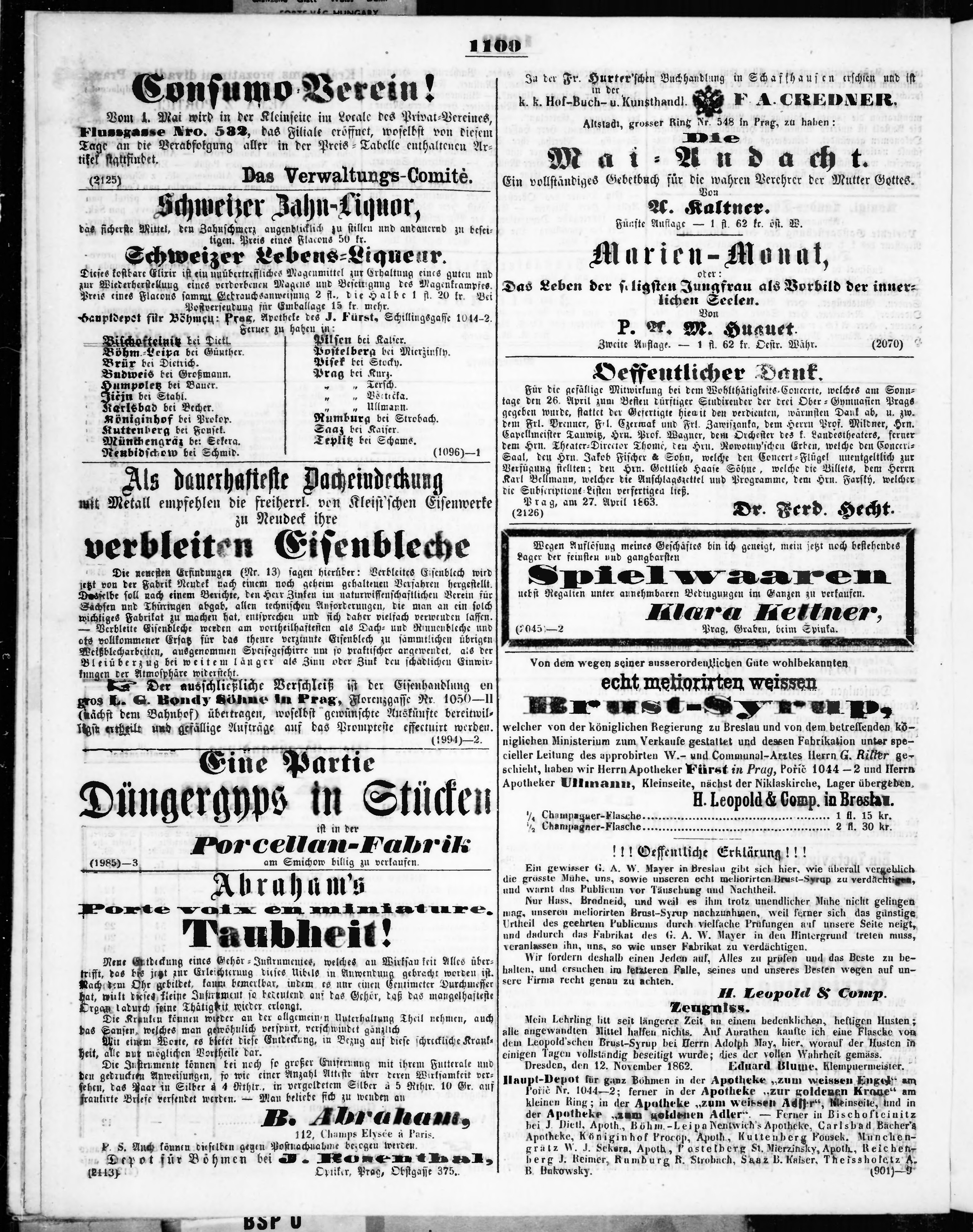 * Datum vydání výtisku: 28.4.1863 Číslo výtisku: 100 Typ výtisku: příloha Poznámky k výtisku: příloha