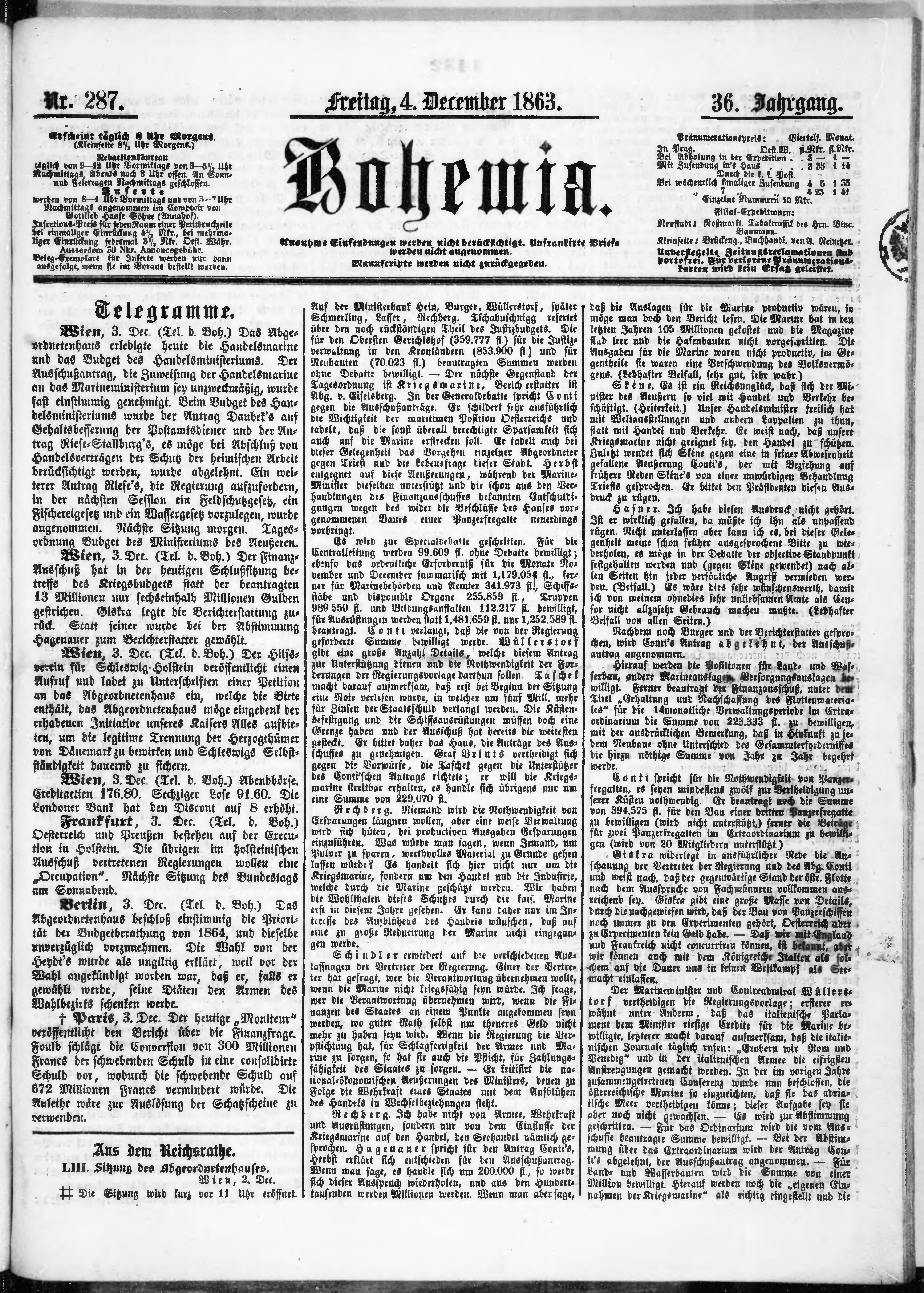 * Datum vydání výtisku: 4.12.1863 Číslo výtisku: 287