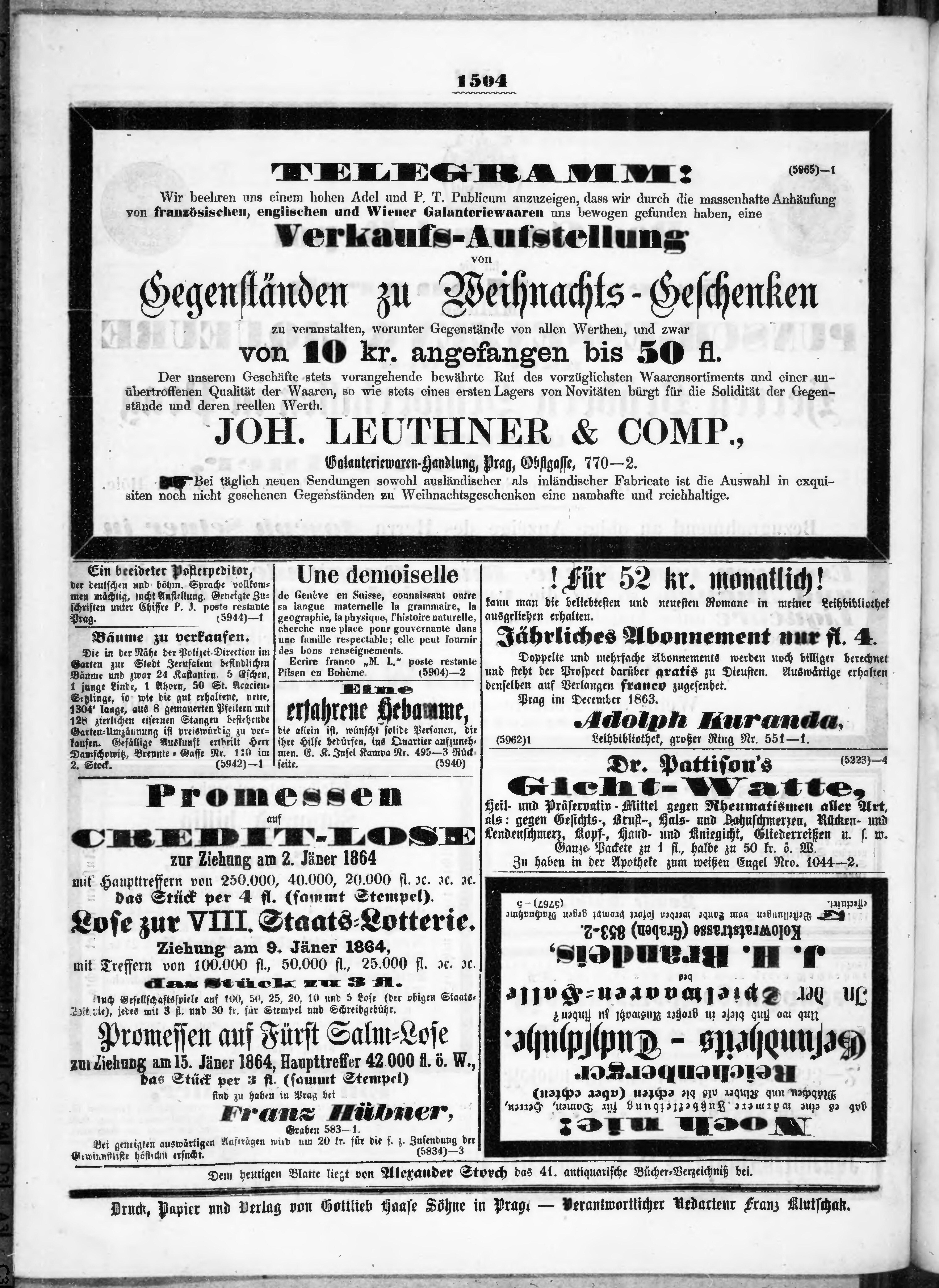 * Datum vydání výtisku: 10.12.1863 Číslo výtisku: 292 Typ výtisku: příloha Poznámky k výtisku: příloha