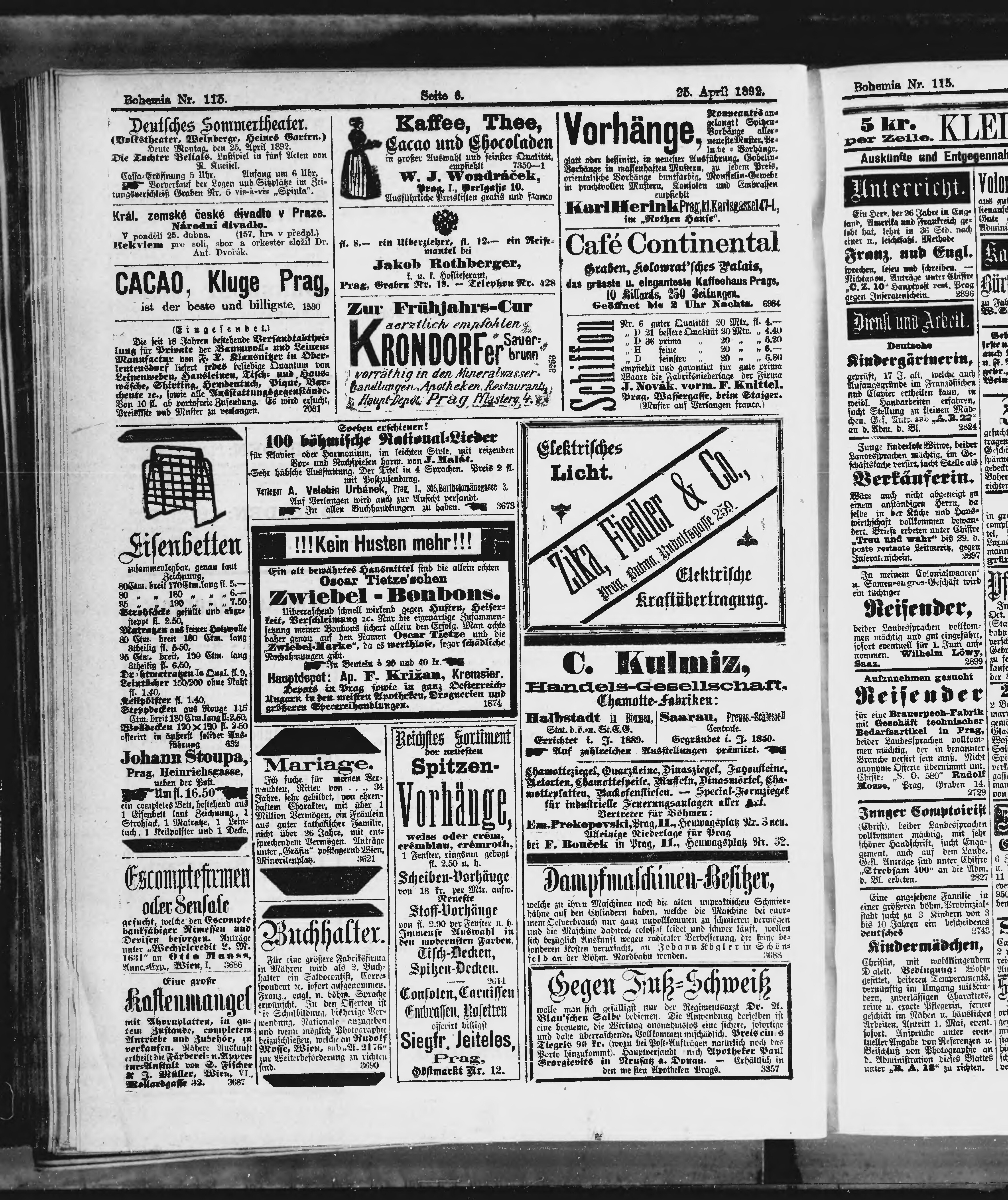 * Datum vydání výtisku: 25.4.1892 Číslo výtisku: 115