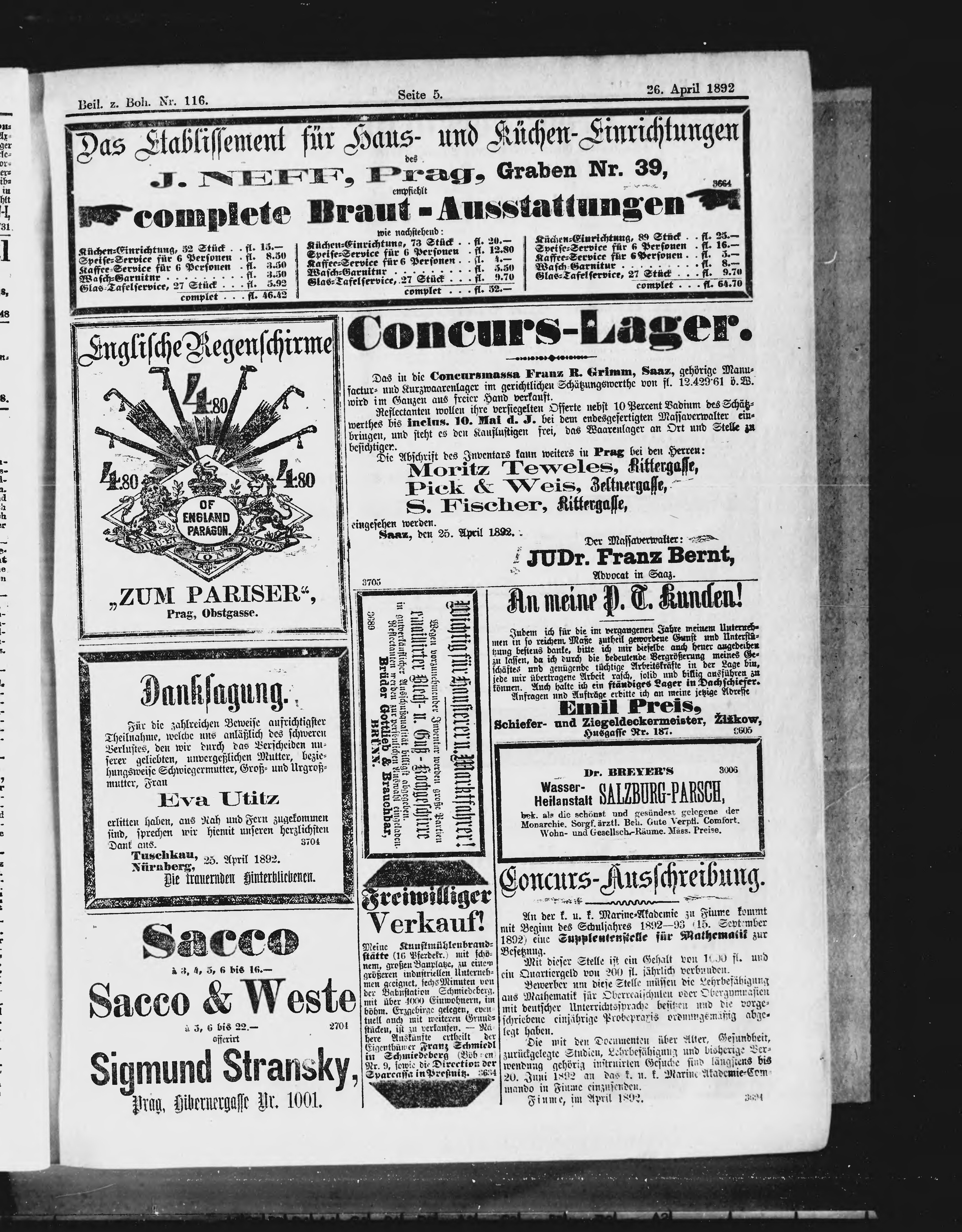 * Datum vydání výtisku: 26.4.1892 Číslo výtisku: 116 Typ výtisku: příloha Poznámky k výtisku: příloha