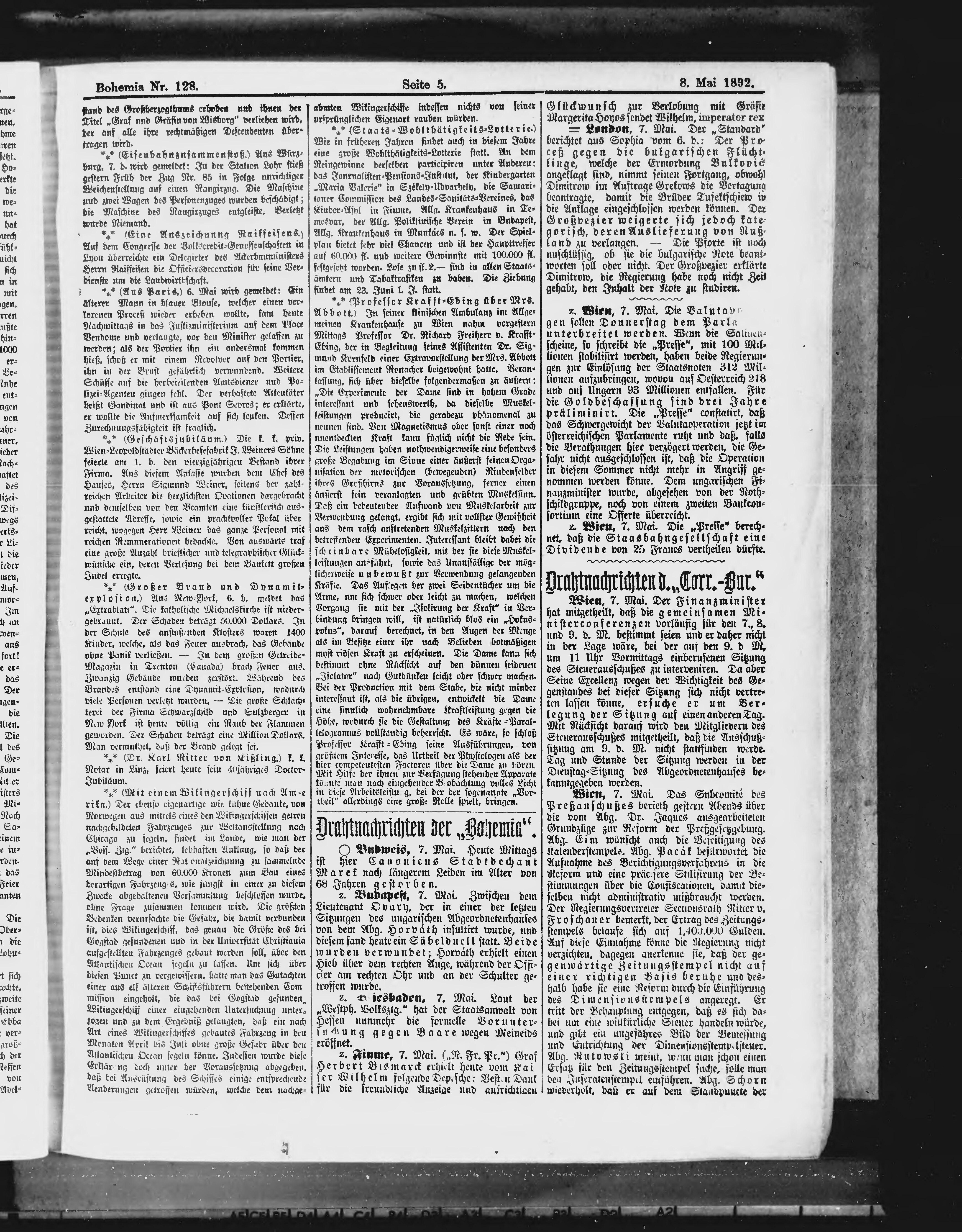 * Datum vydání výtisku: 8.5.1892 Číslo výtisku: 128
