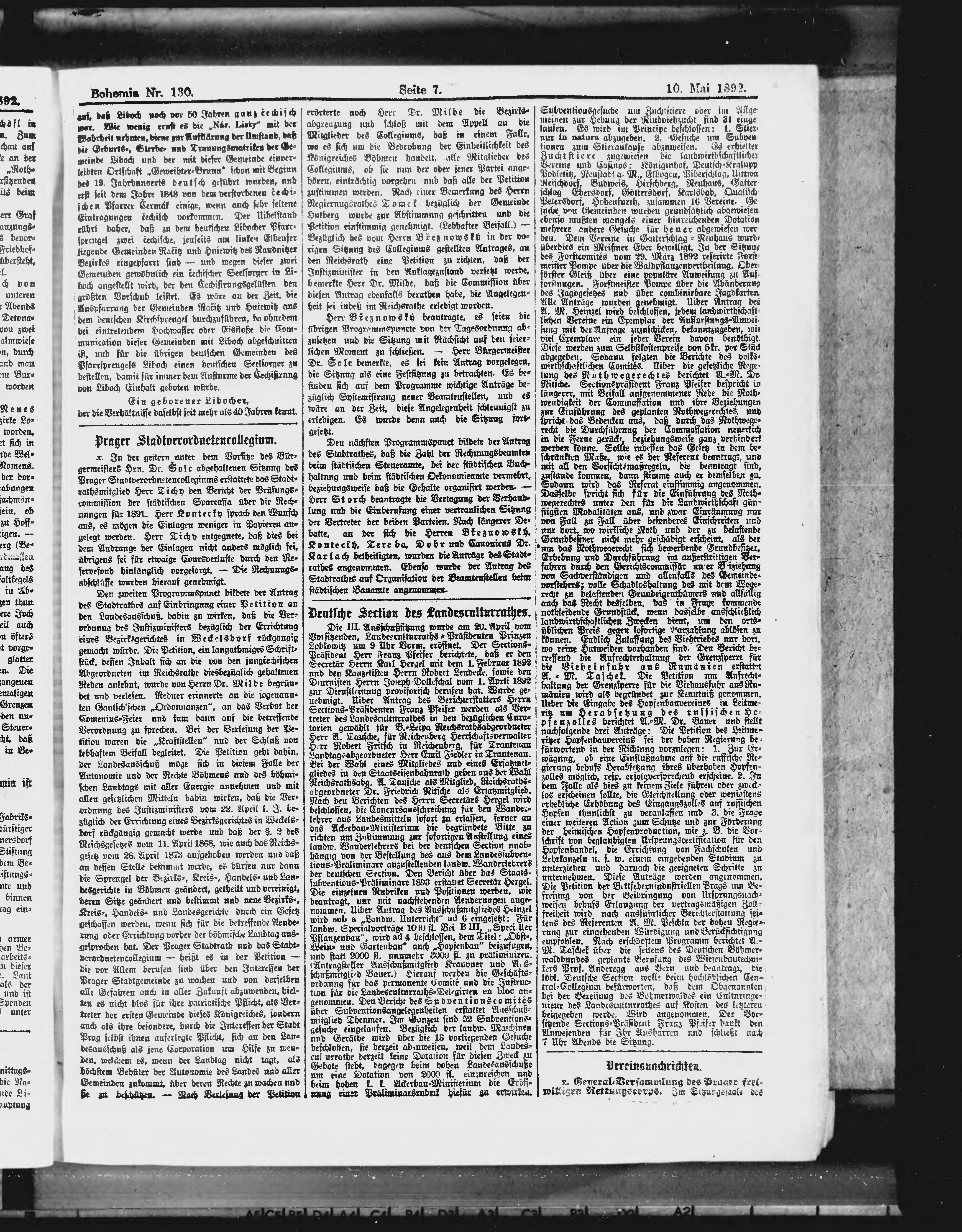 * Datum vydání výtisku: 10.5.1892 Číslo výtisku: 130
