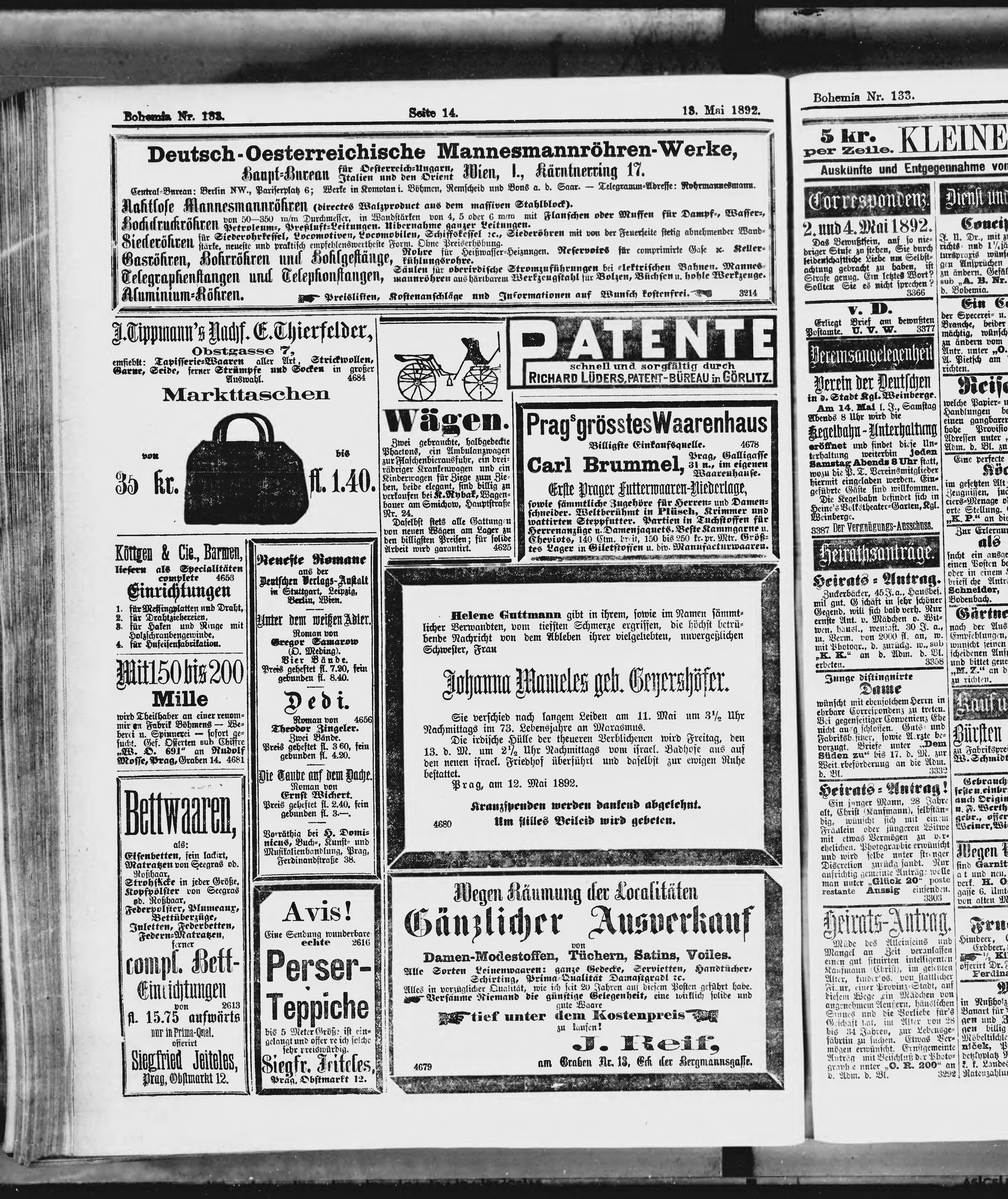 * Datum vydání výtisku: 13.5.1892 Číslo výtisku: 133