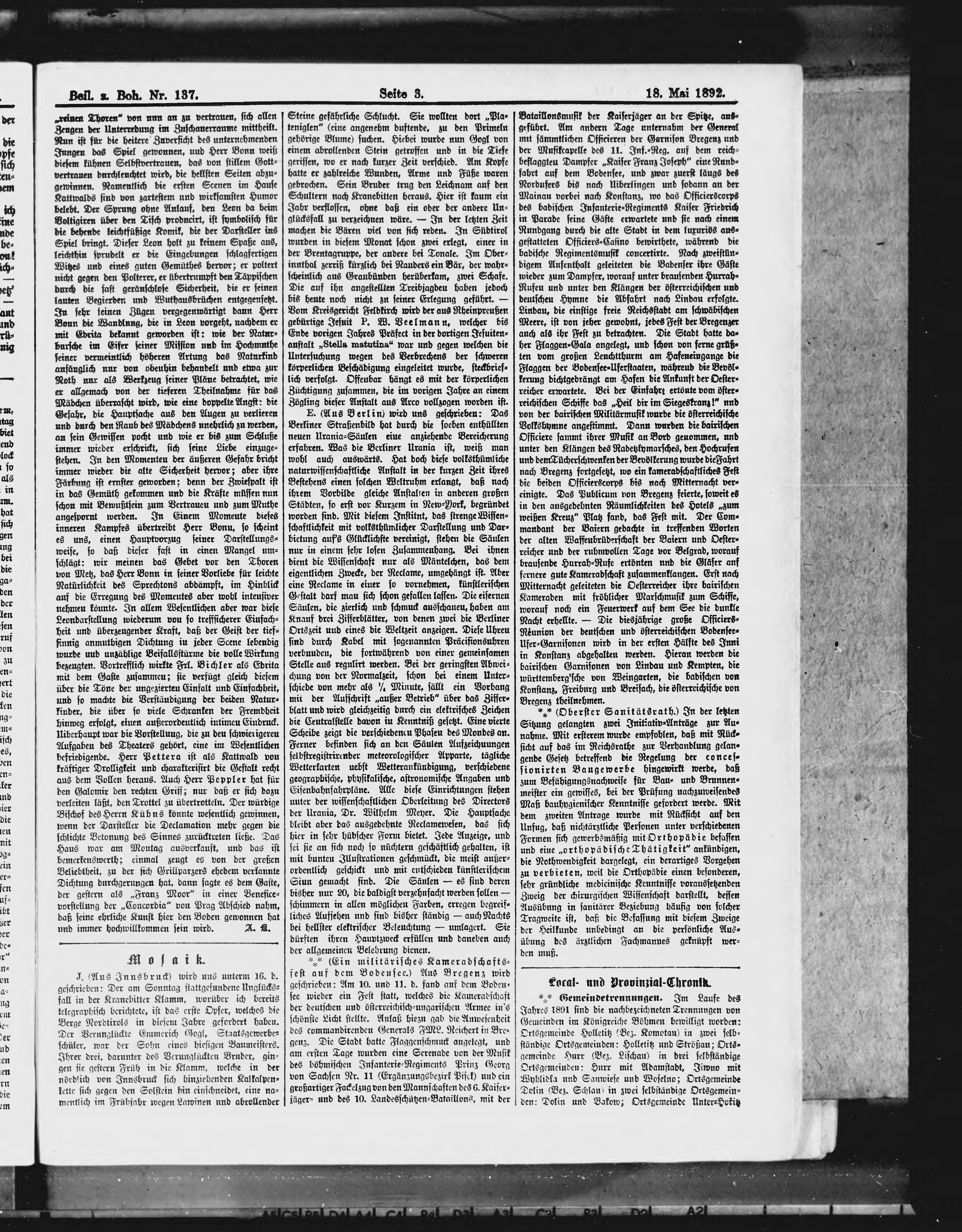 * Datum vydání výtisku: 18.5.1892 Číslo výtisku: 137 Typ výtisku: příloha Poznámky k výtisku: příloha