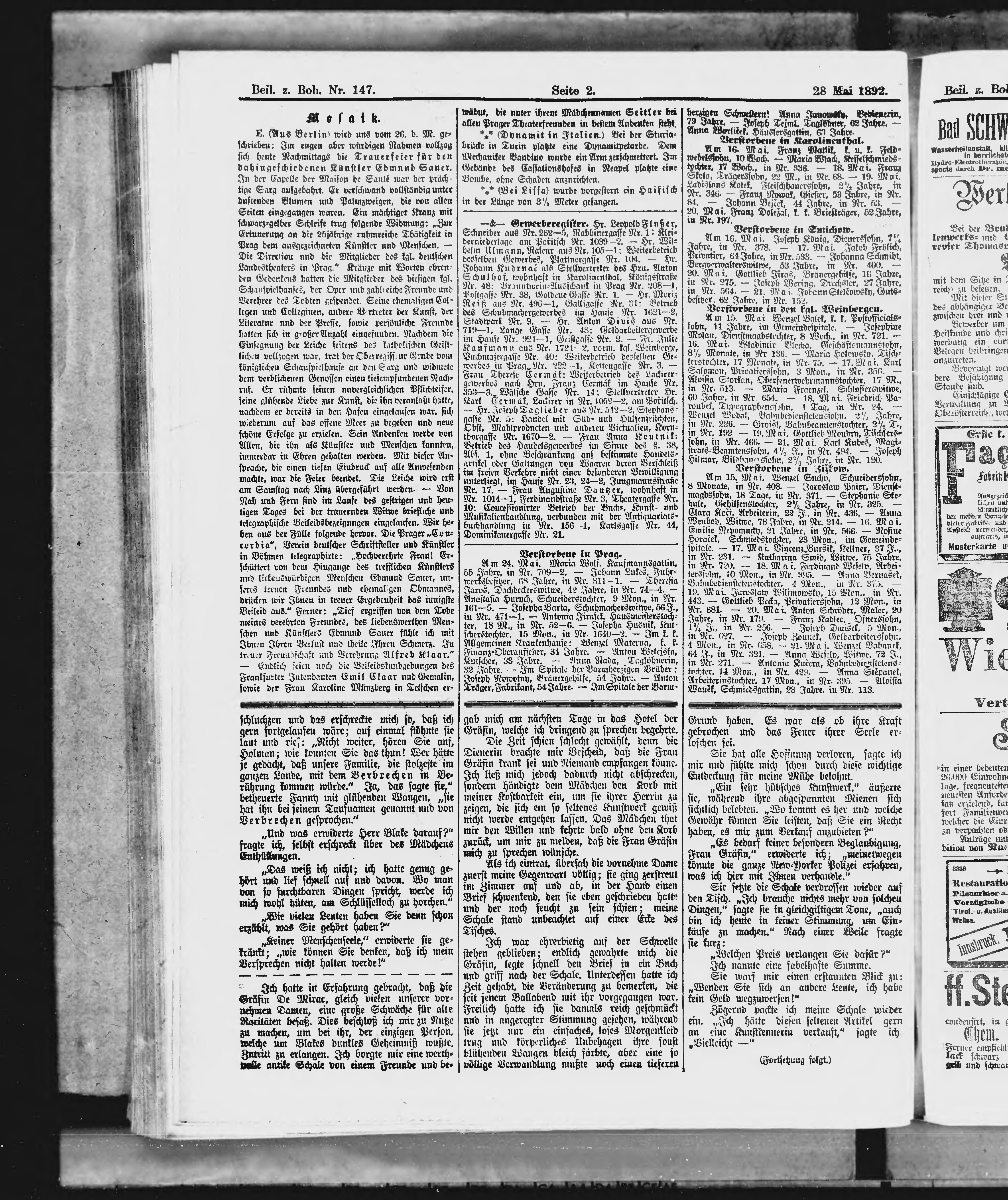 * Datum vydání výtisku: 28.5.1892 Číslo výtisku: 147 Typ výtisku: příloha Poznámky k výtisku: příloha