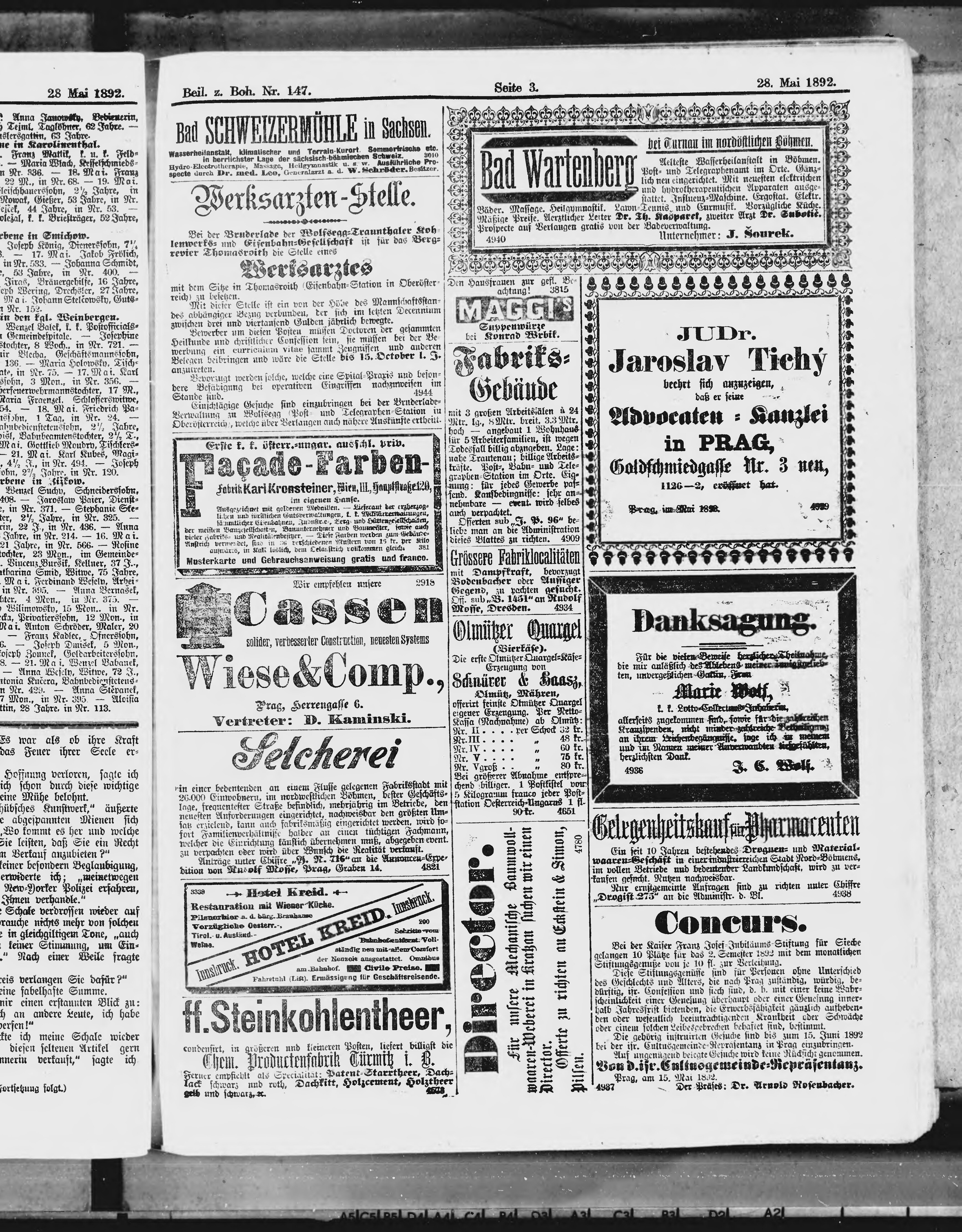 * Datum vydání výtisku: 28.5.1892 Číslo výtisku: 147 Typ výtisku: příloha Poznámky k výtisku: příloha