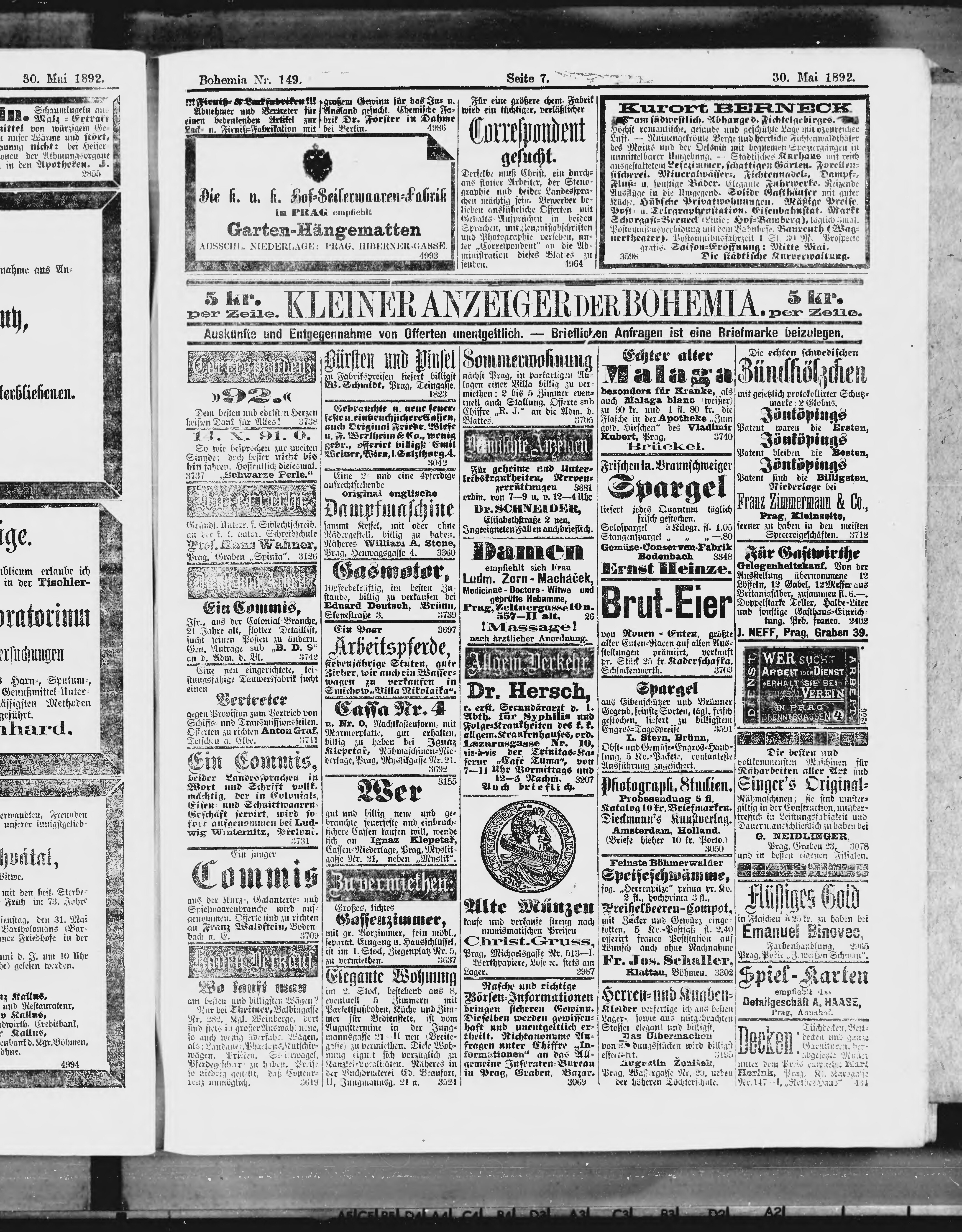 * Datum vydání výtisku: 30.5.1892 Číslo výtisku: 149
