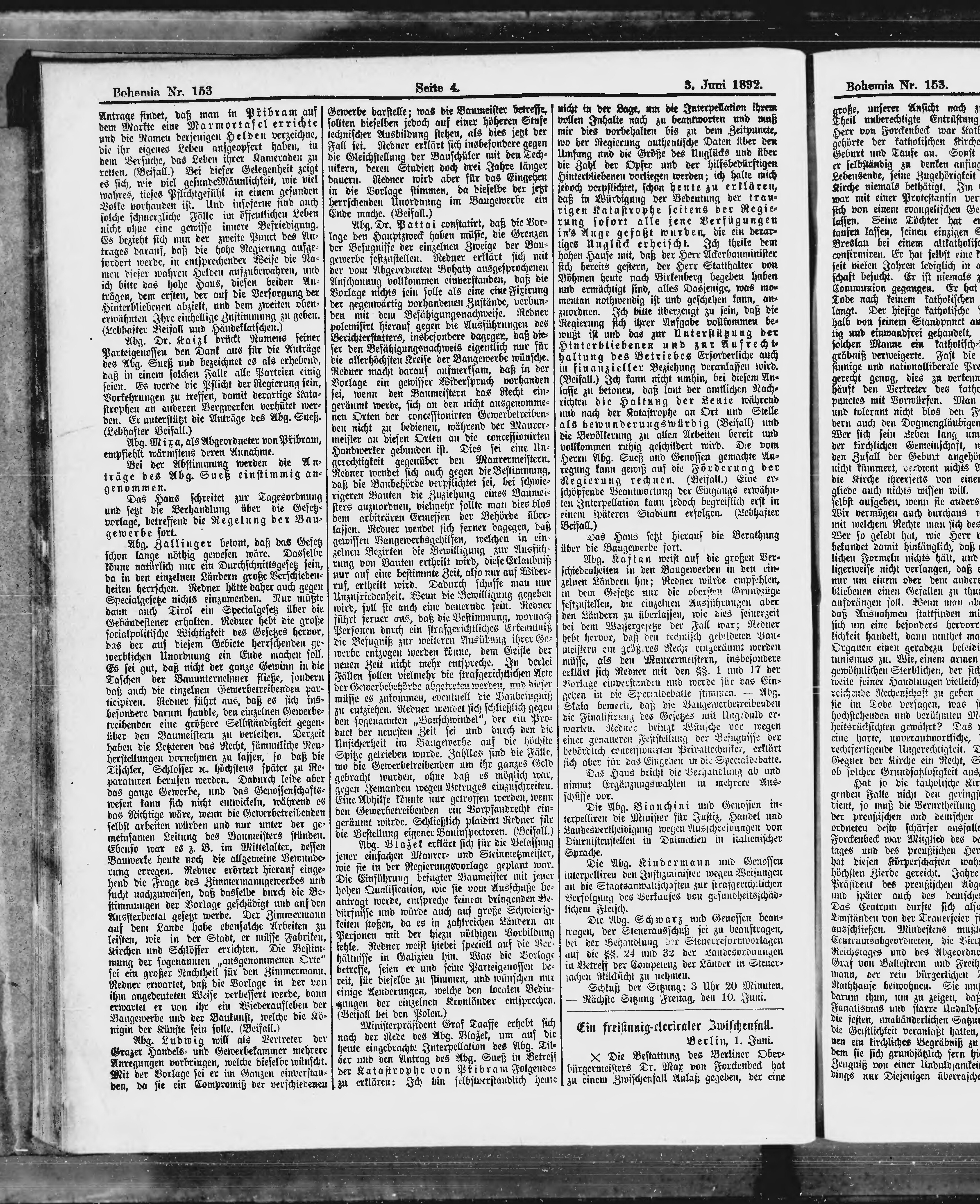 * Datum vydání výtisku: 3.6.1892 Číslo výtisku: 153