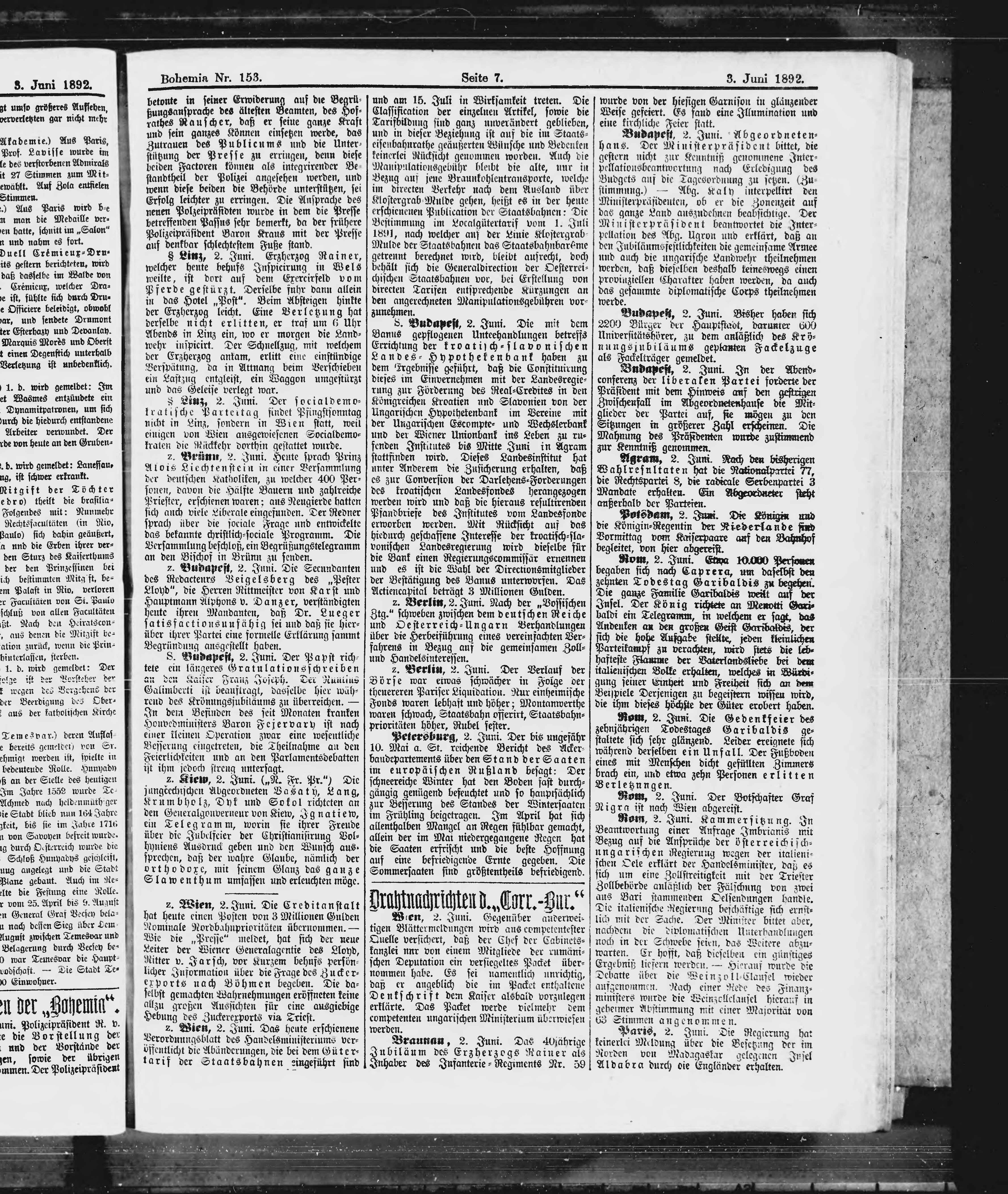 * Datum vydání výtisku: 3.6.1892 Číslo výtisku: 153