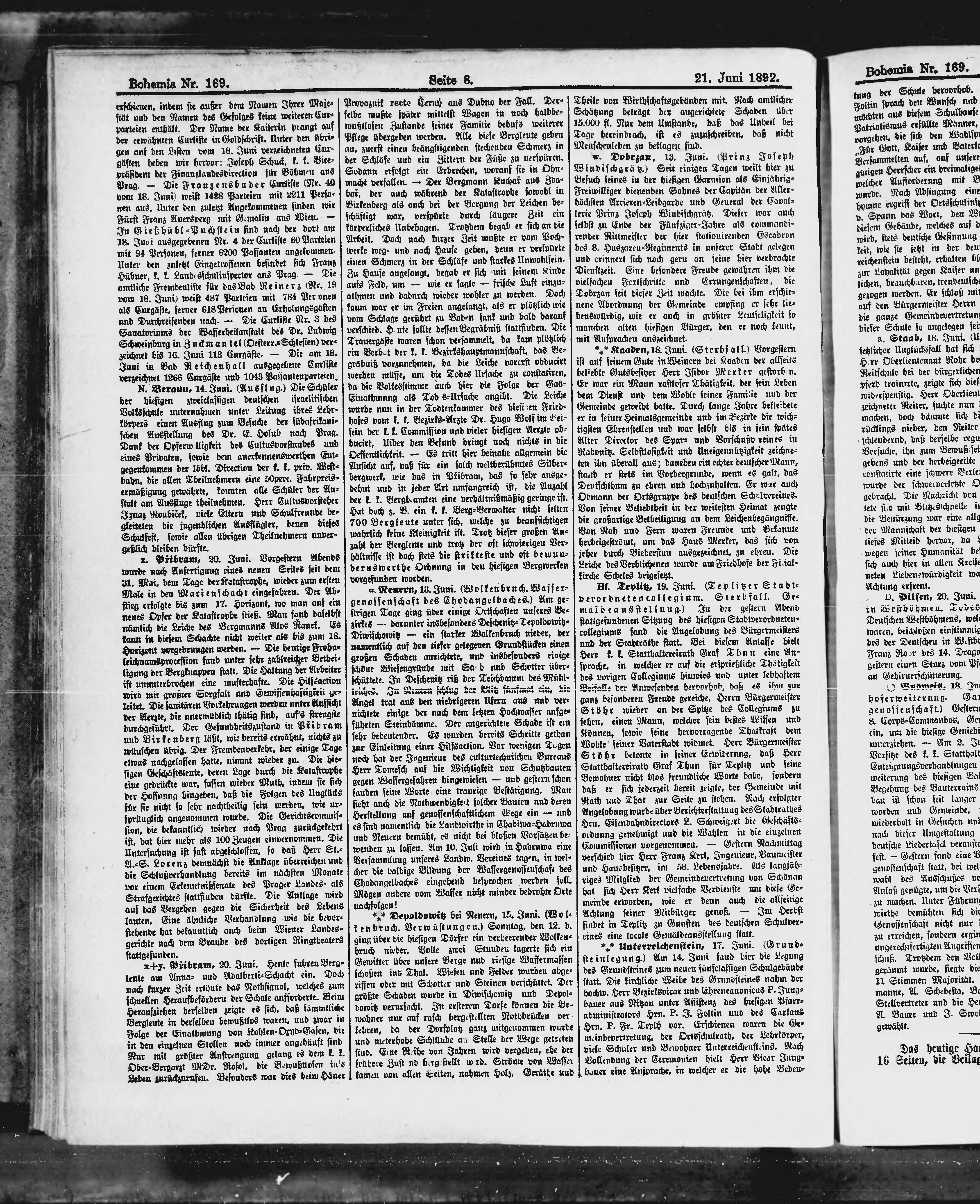 * Datum vydání výtisku: 21.6.1892 Číslo výtisku: 169 Poznámky k výtisku: s. 16 chybné číslování