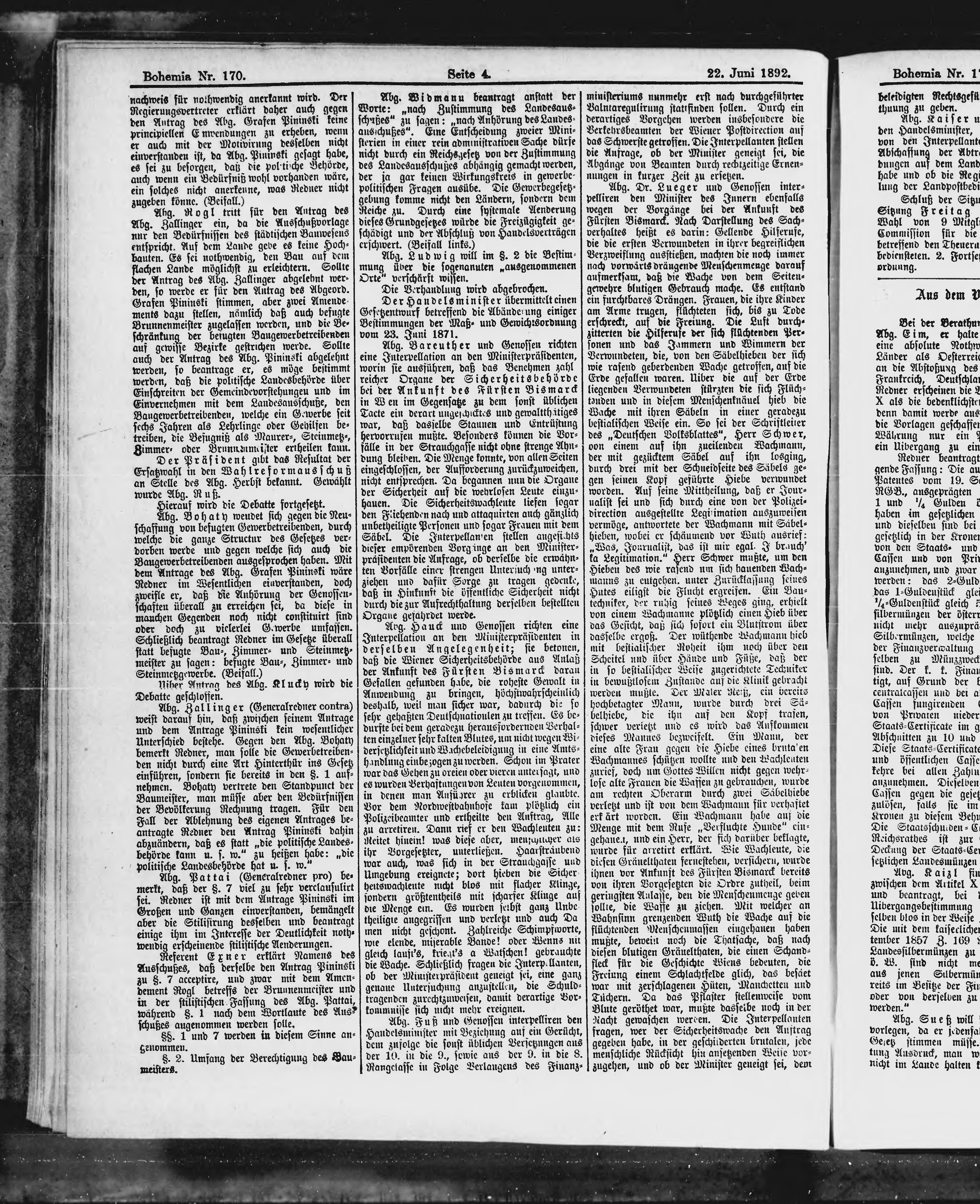 * Datum vydání výtisku: 22.6.1892 Číslo výtisku: 170