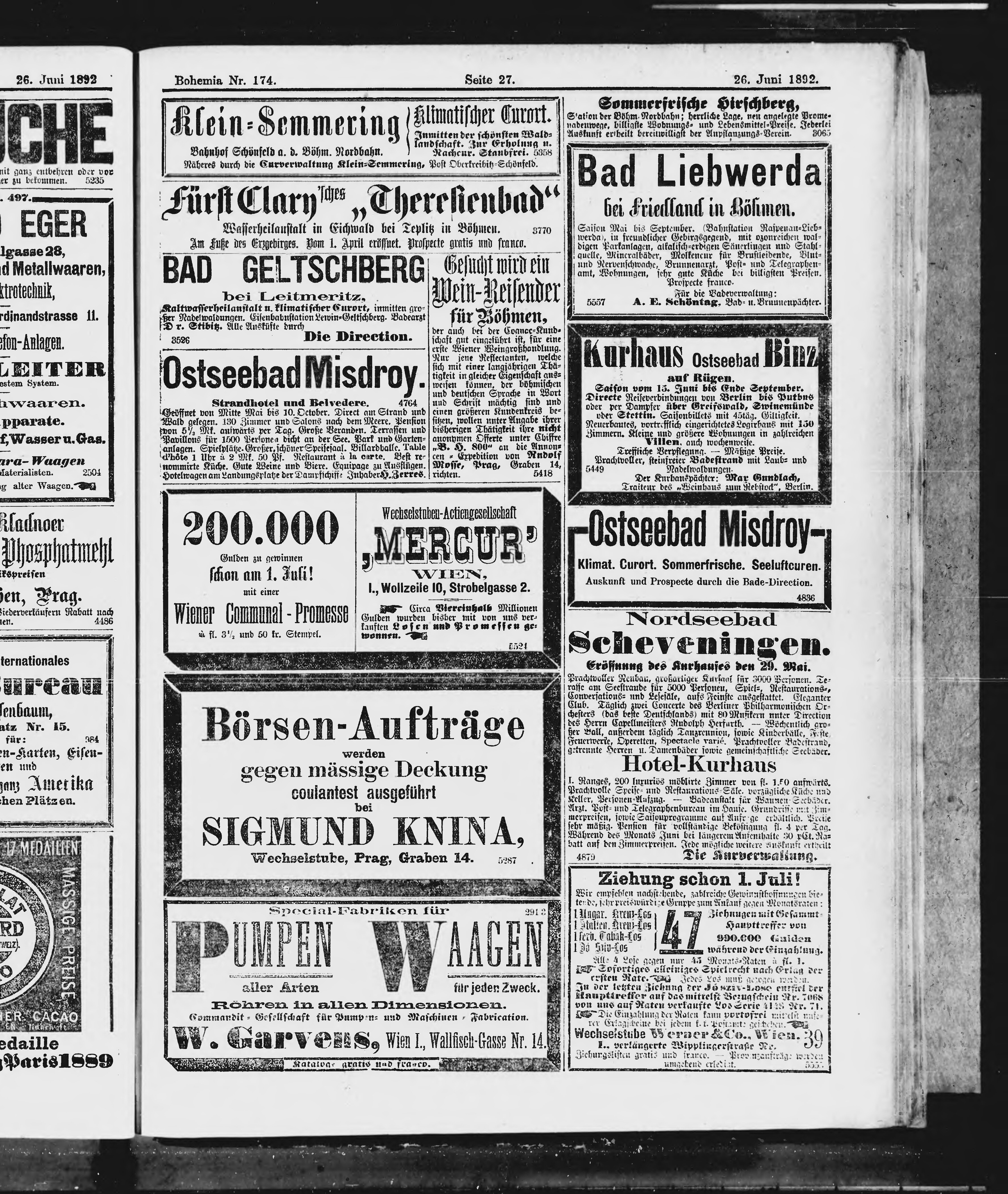 * Datum vydání výtisku: 26.6.1892 Číslo výtisku: 174