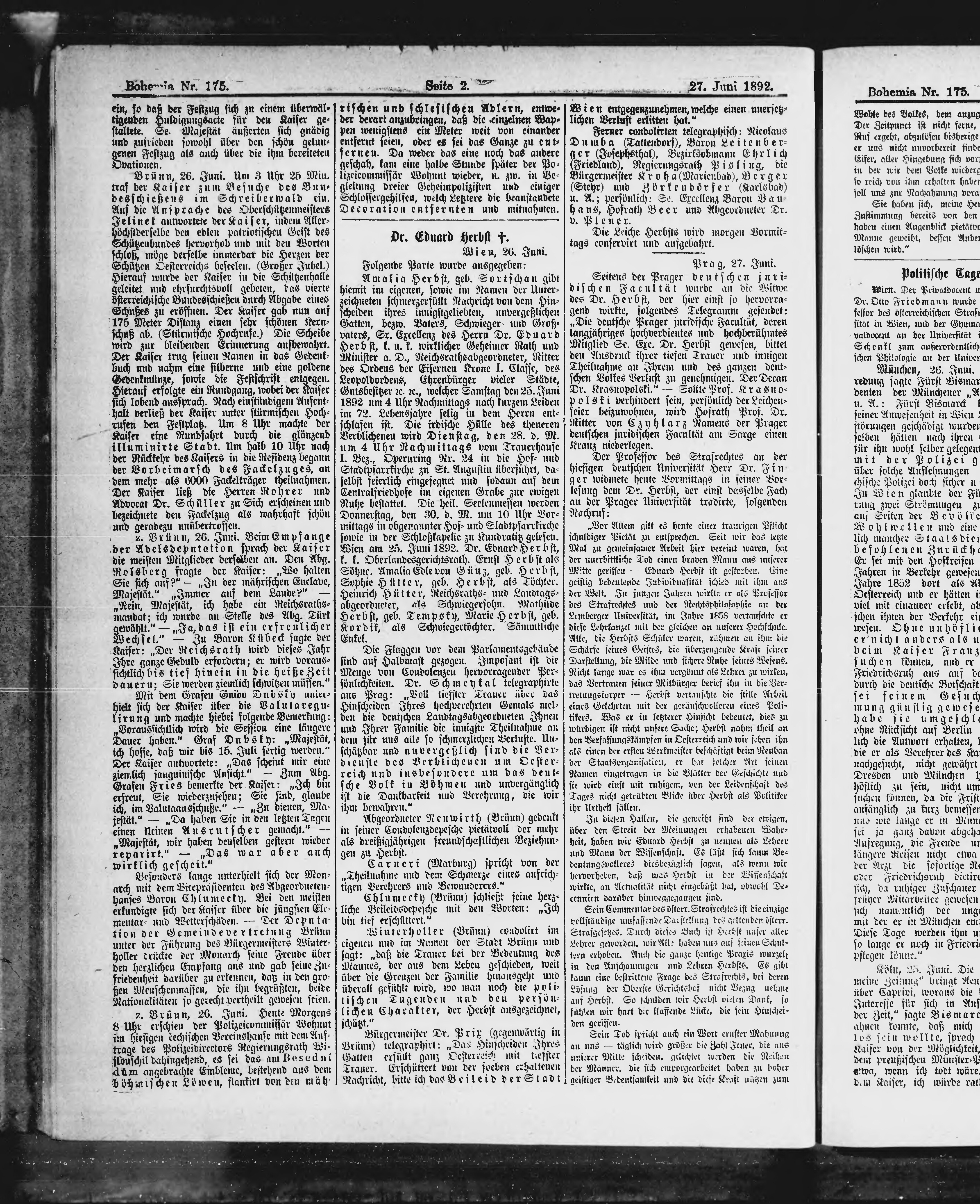 * Datum vydání výtisku: 27.6.1892 Číslo výtisku: 175