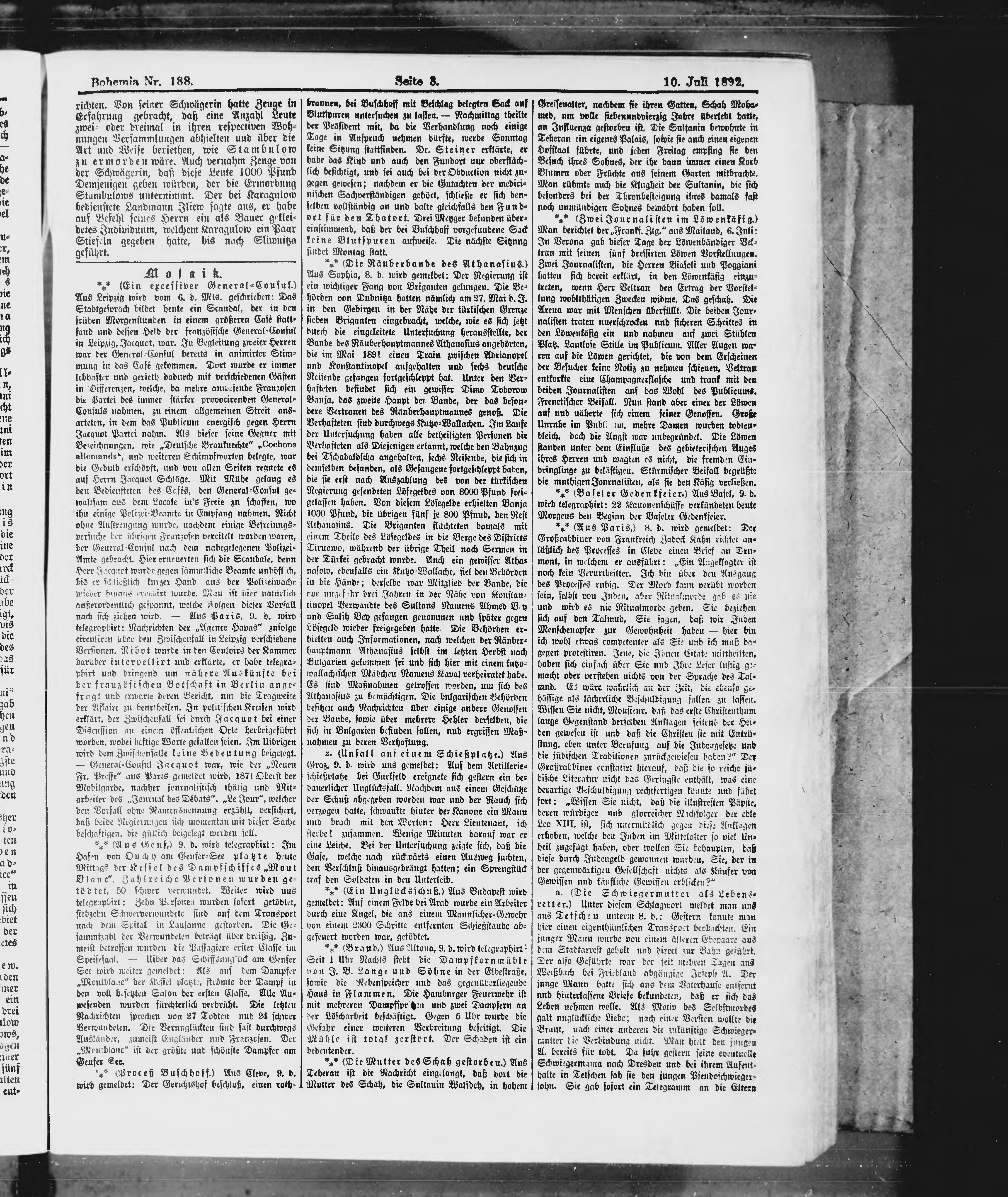 * Datum vydání výtisku: 10.7.1892 Číslo výtisku: 188