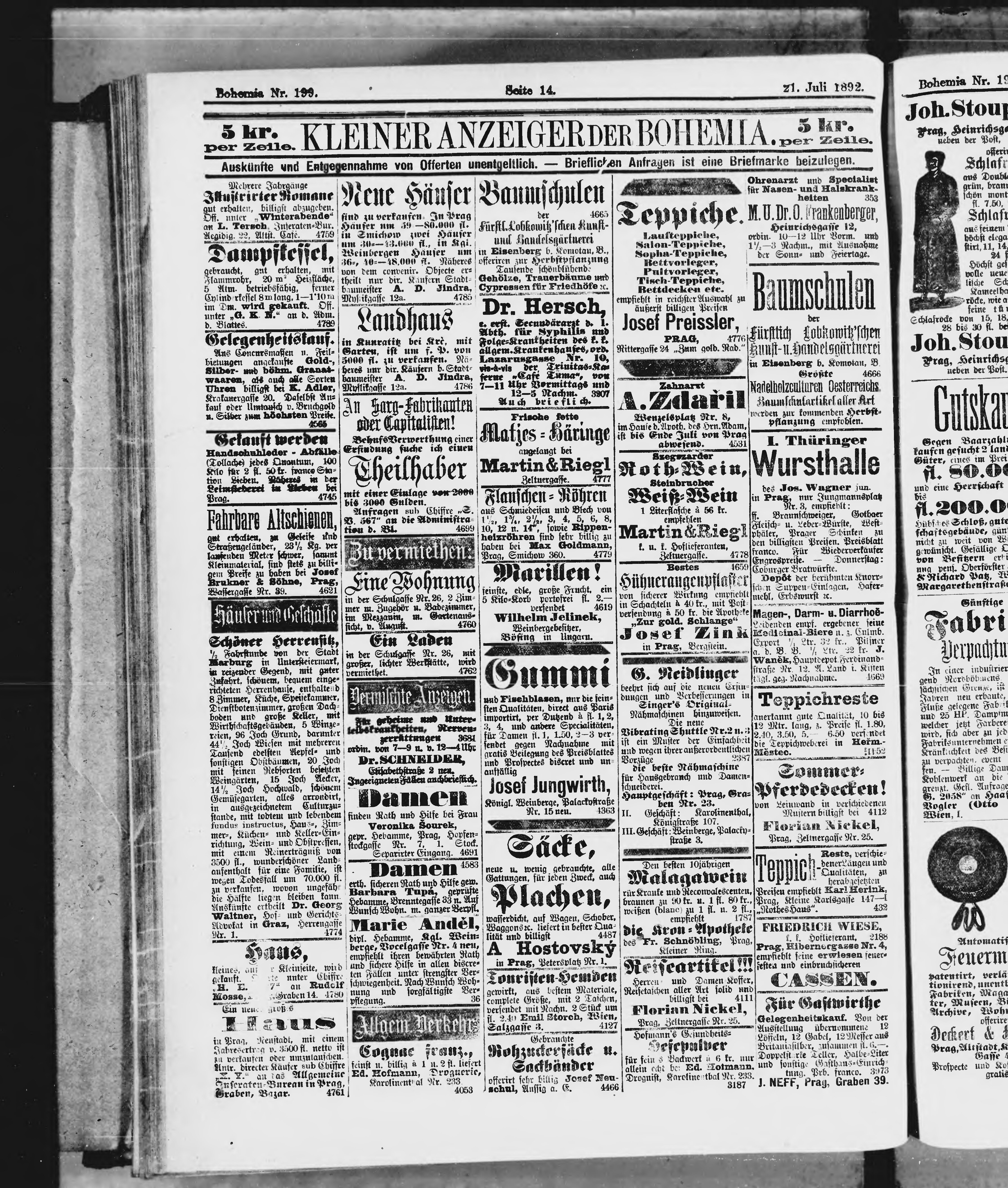 * Datum vydání výtisku: 21.7.1892 Číslo výtisku: 199