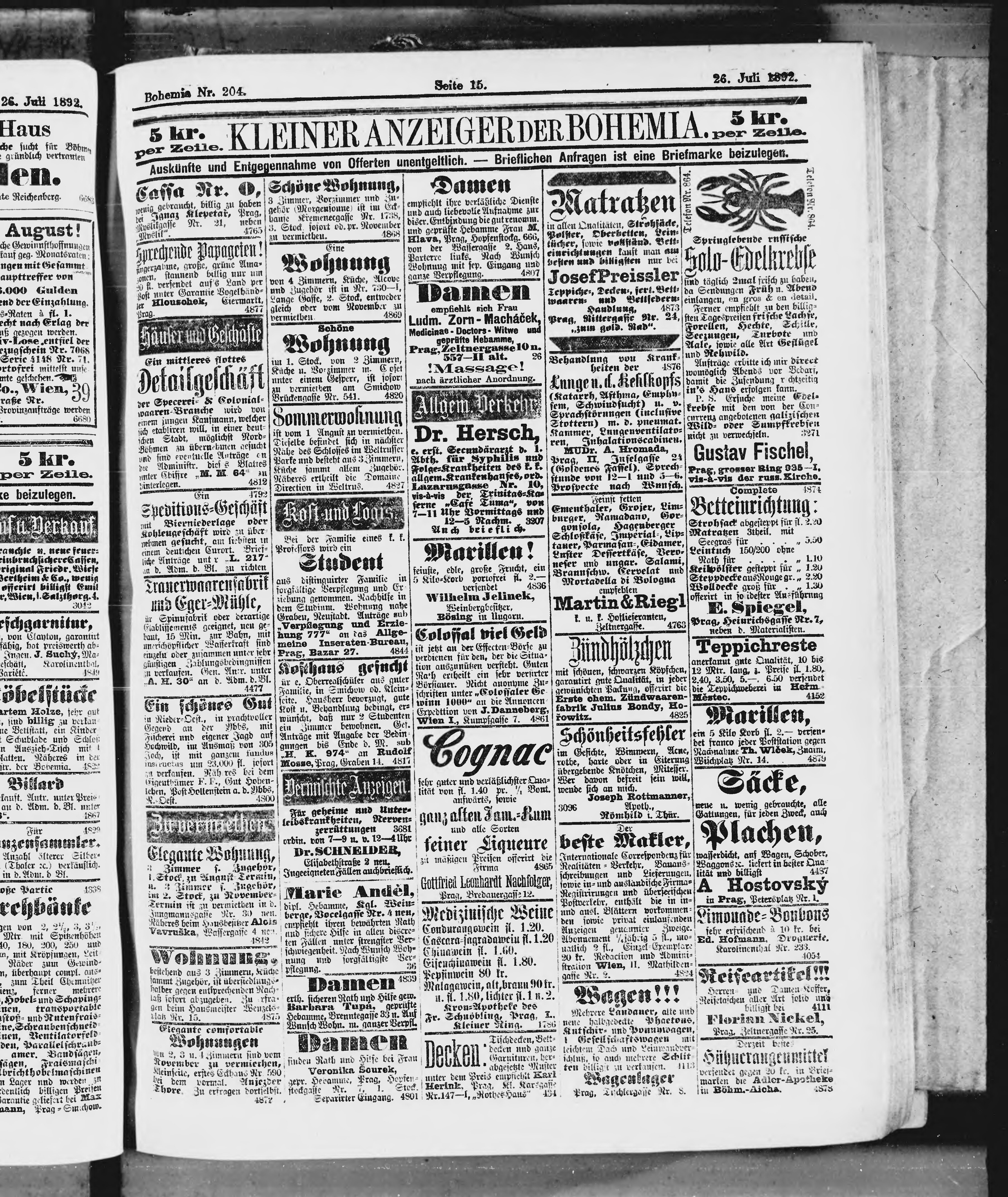 * Datum vydání výtisku: 26.7.1892 Číslo výtisku: 204