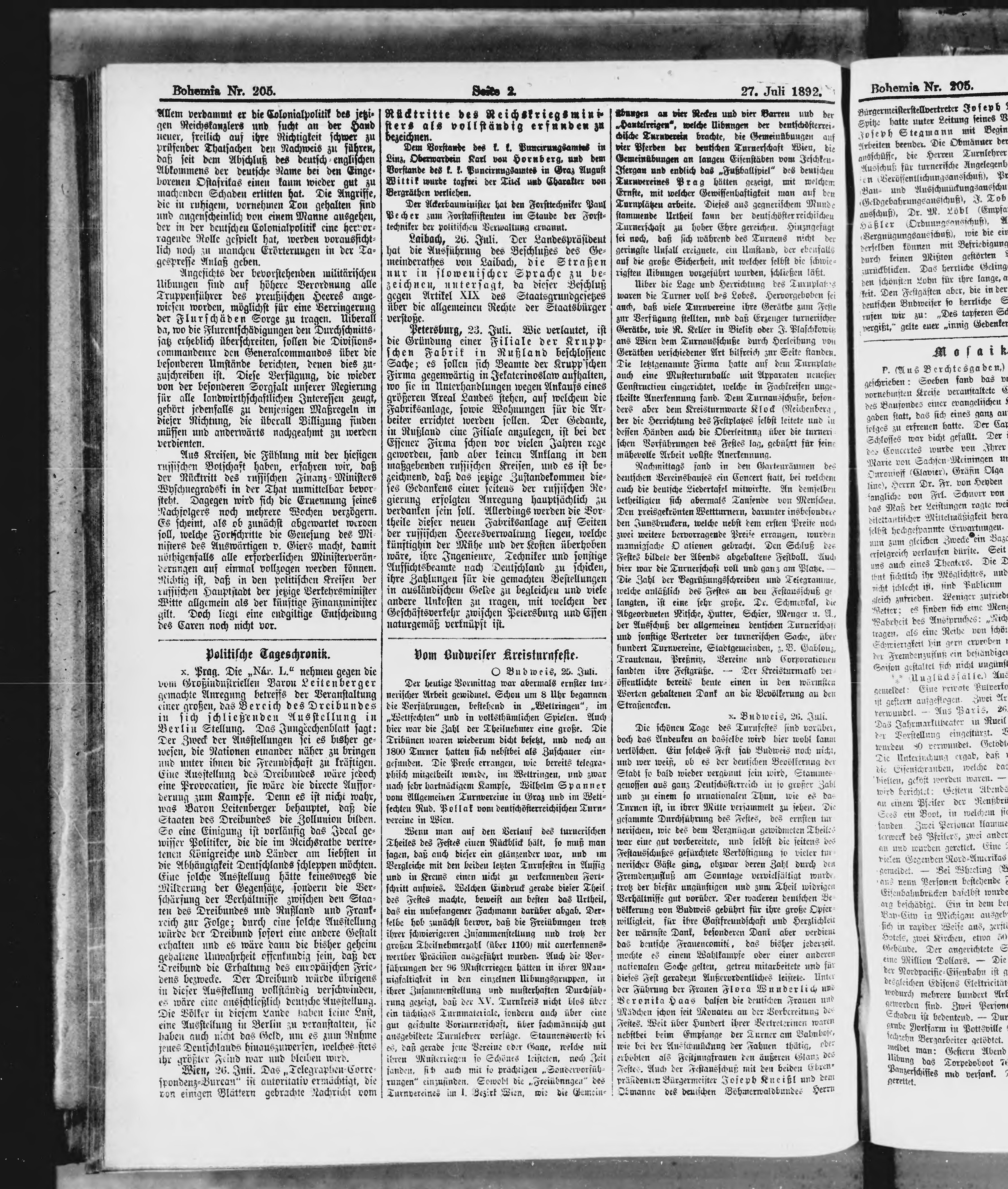 * Datum vydání výtisku: 27.7.1892 Číslo výtisku: 205