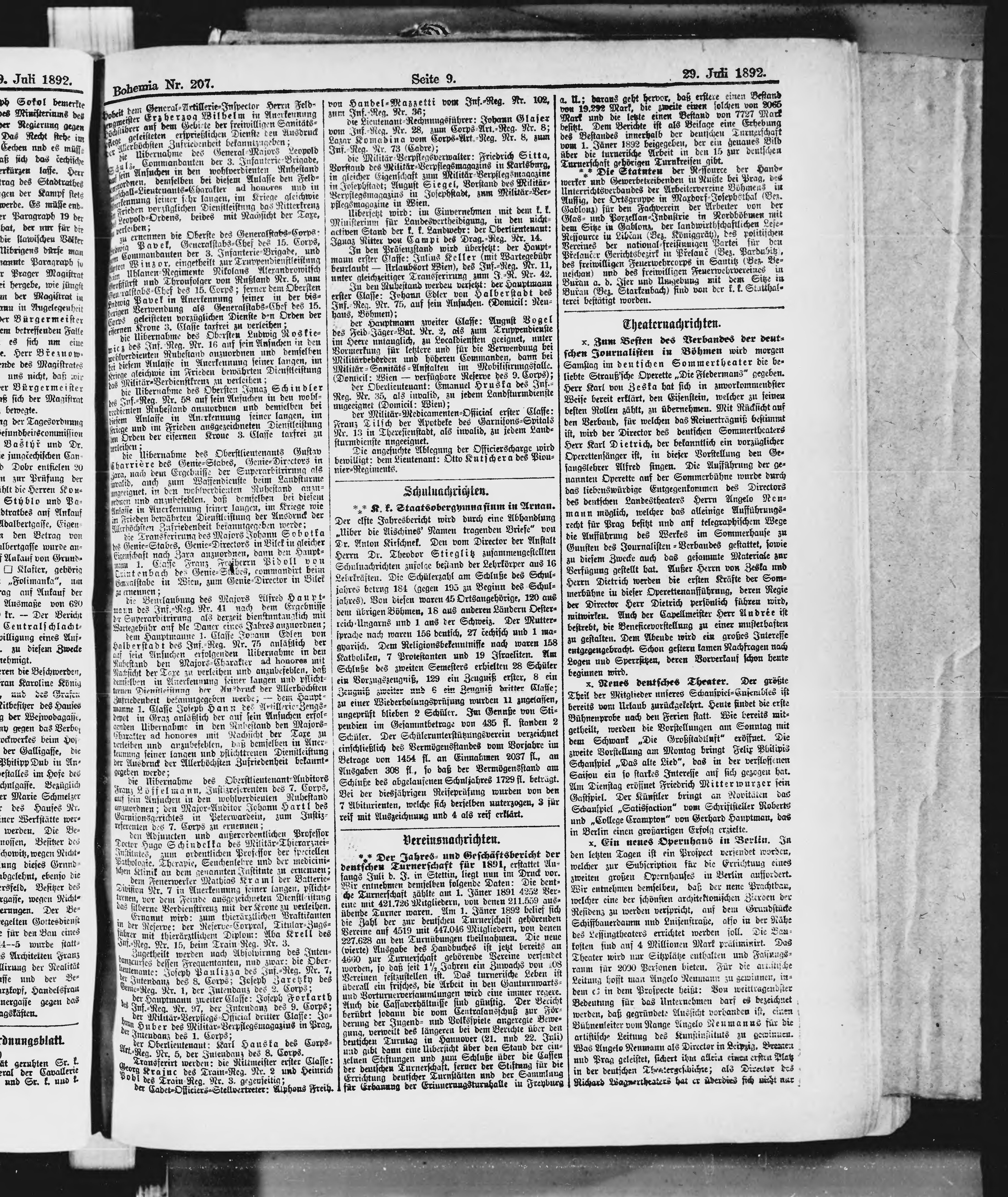 * Datum vydání výtisku: 29.7.1892 Číslo výtisku: 207