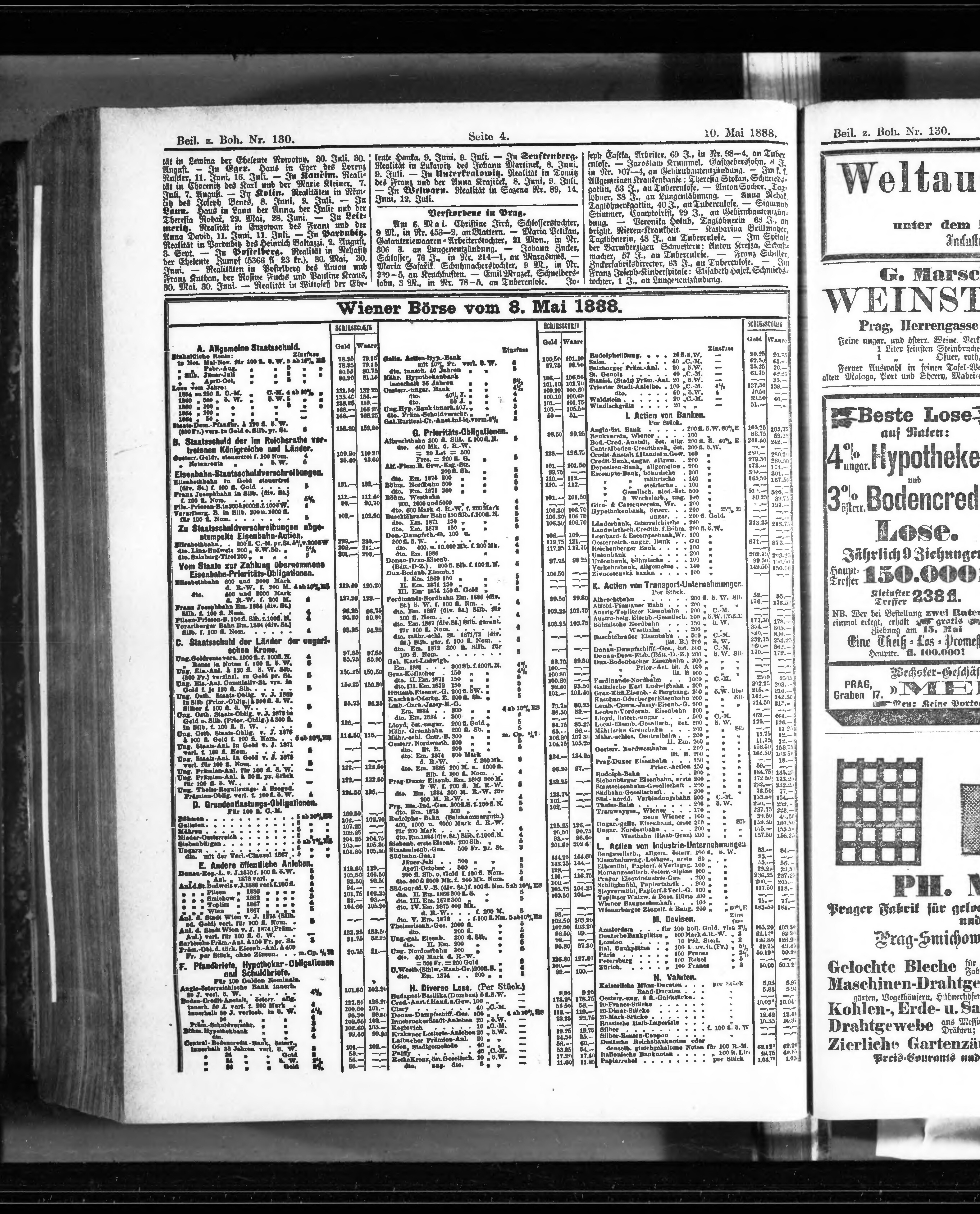 * Datum vydání výtisku: 10.5.1888 Číslo výtisku: 130 Typ výtisku: příloha Poznámky k výtisku: příloha