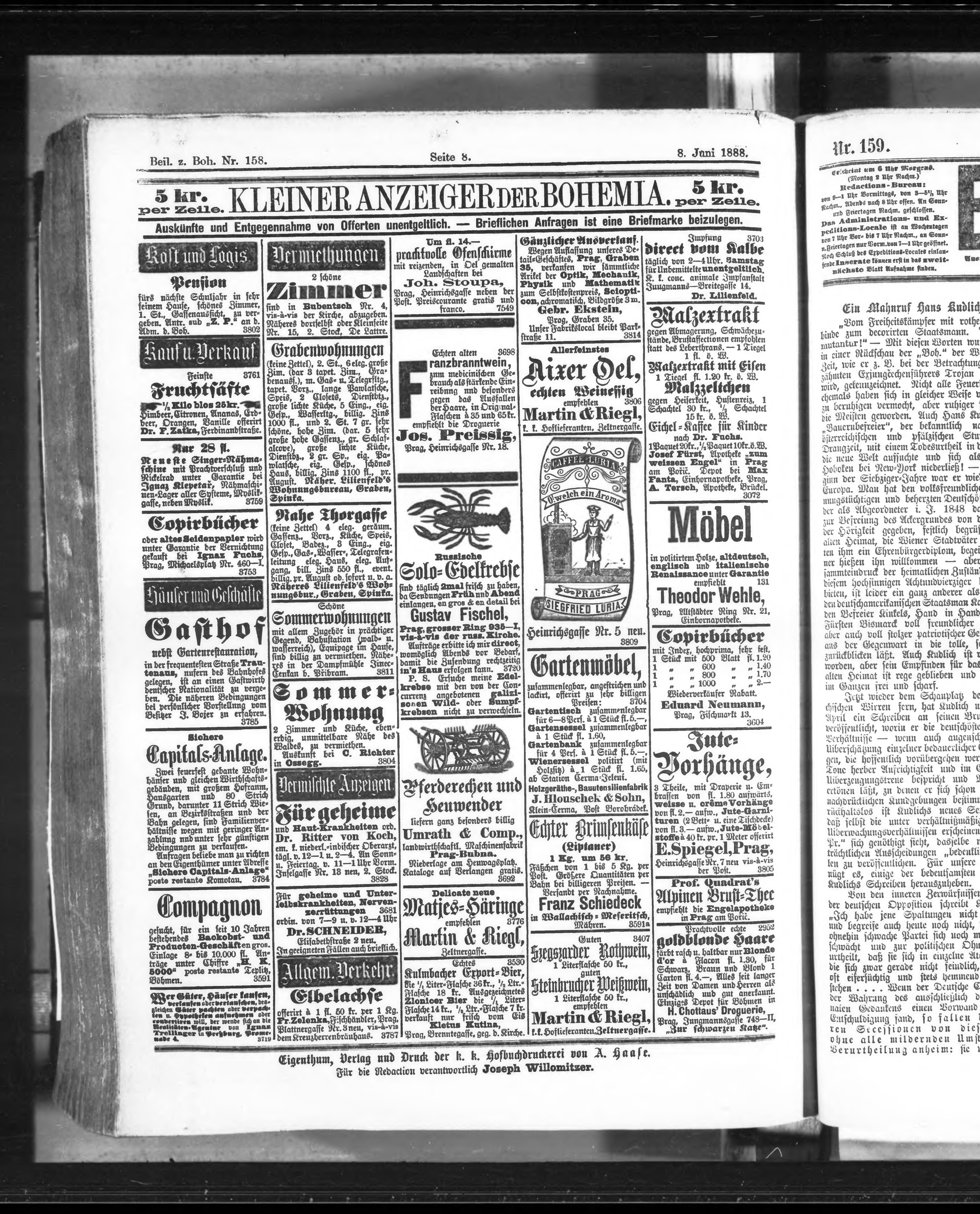 * Datum vydání výtisku: 8.6.1888 Číslo výtisku: 158 Typ výtisku: příloha Poznámky k výtisku: příloha