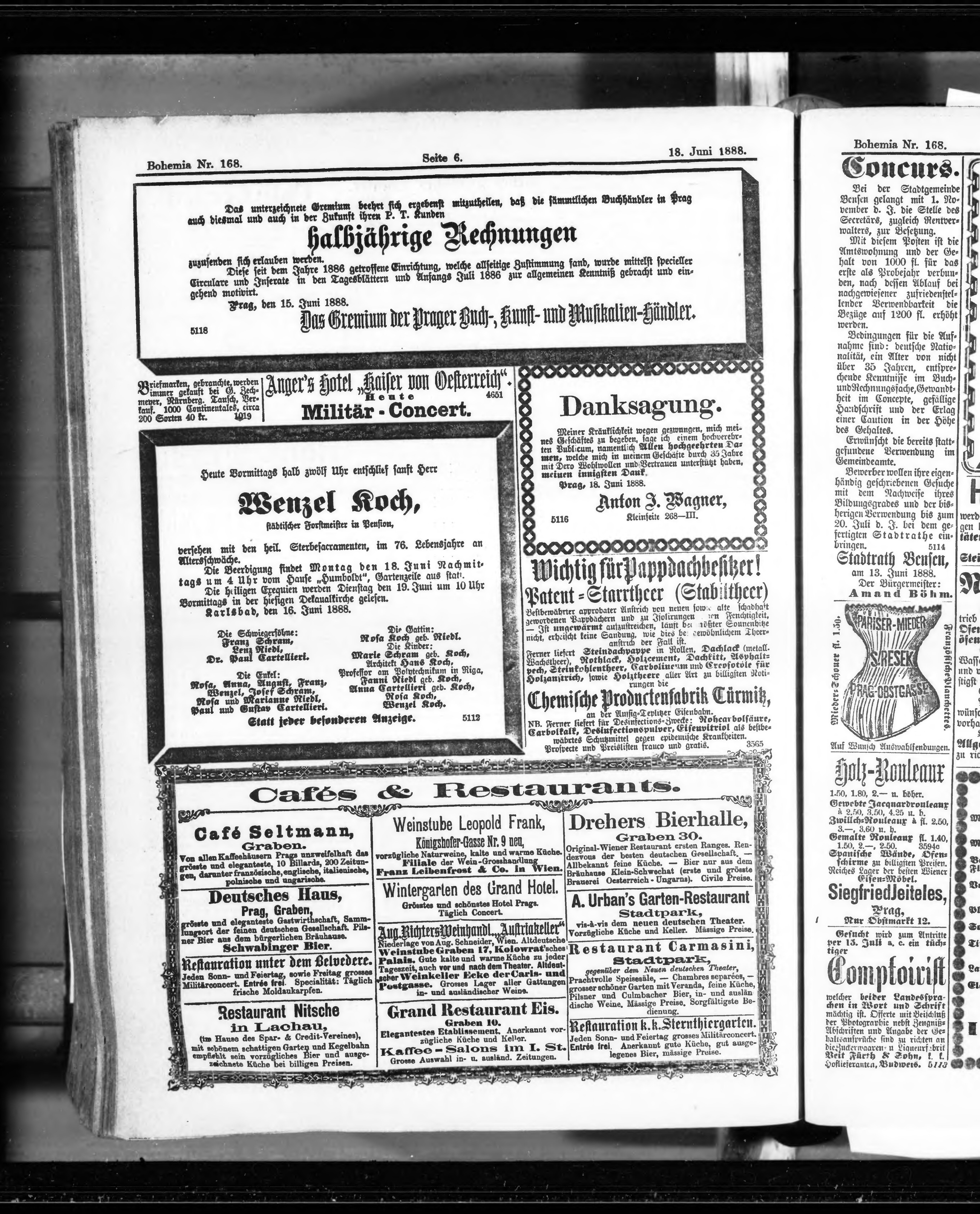* Datum vydání výtisku: 18.6.1888 Číslo výtisku: 168