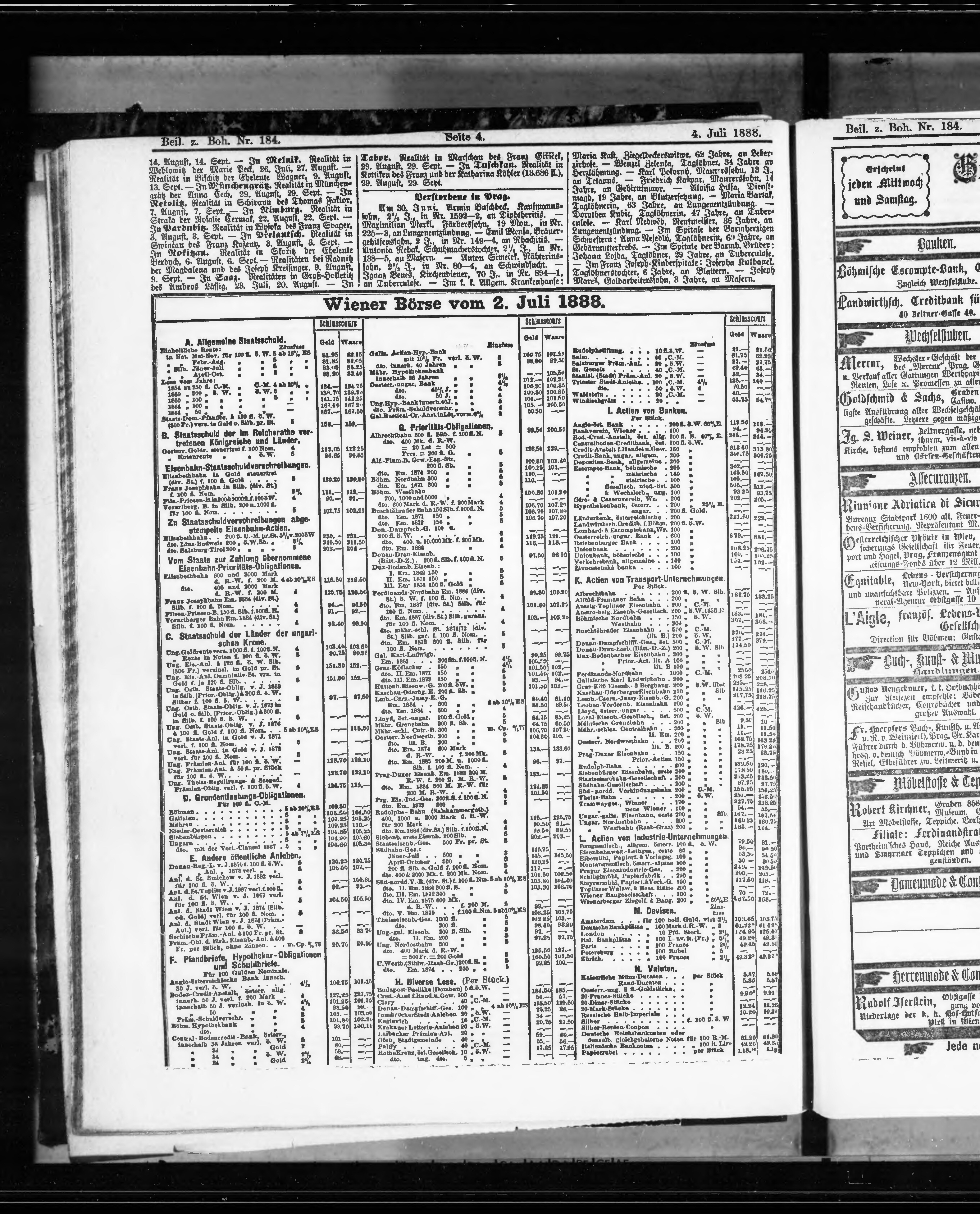 * Datum vydání výtisku: 4.7.1888 Číslo výtisku: 184 Typ výtisku: příloha Poznámky k výtisku: příloha