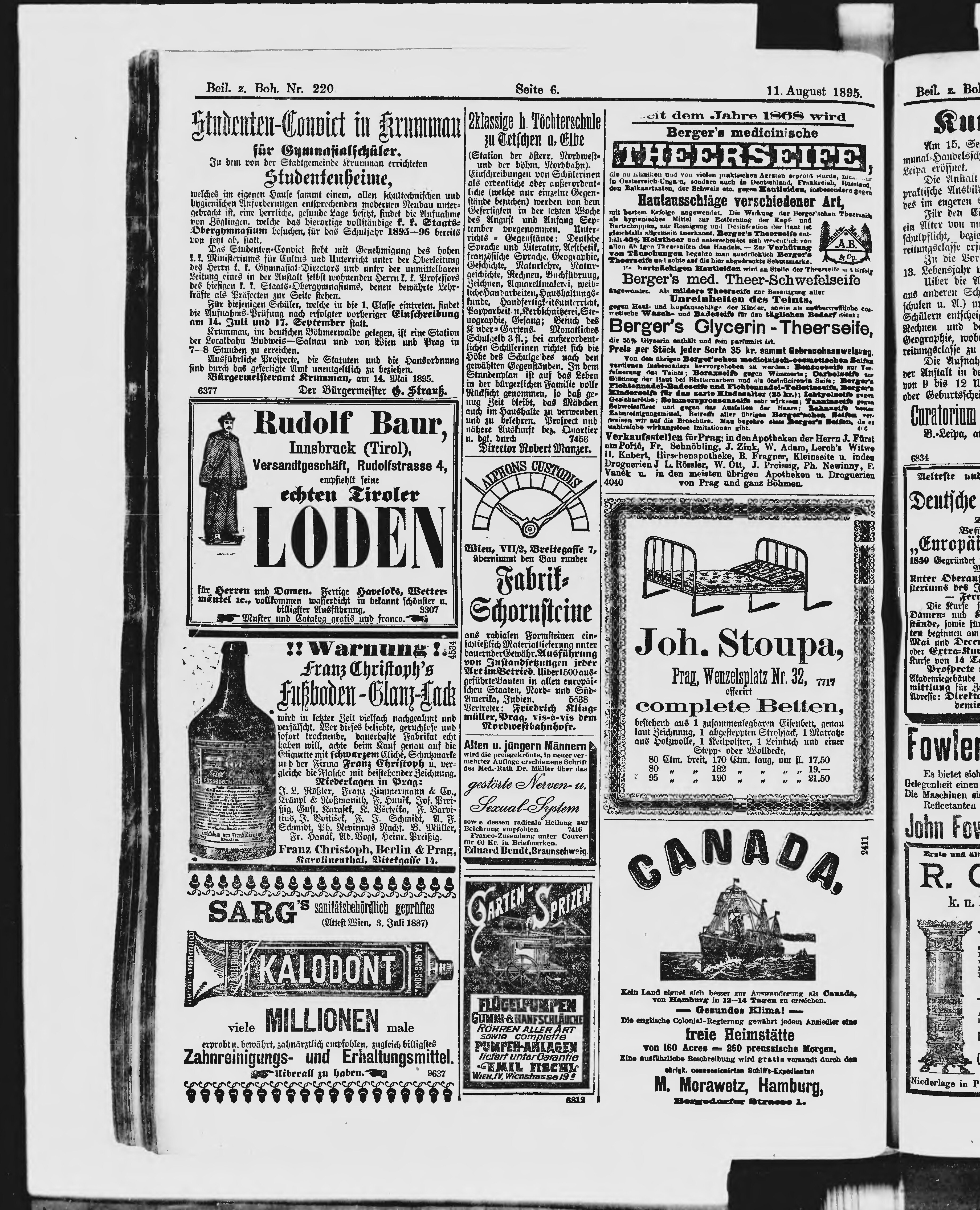 * Datum vydání výtisku: 11.8.1895 Číslo výtisku: 220 Typ výtisku: příloha Poznámky k výtisku: příloha
