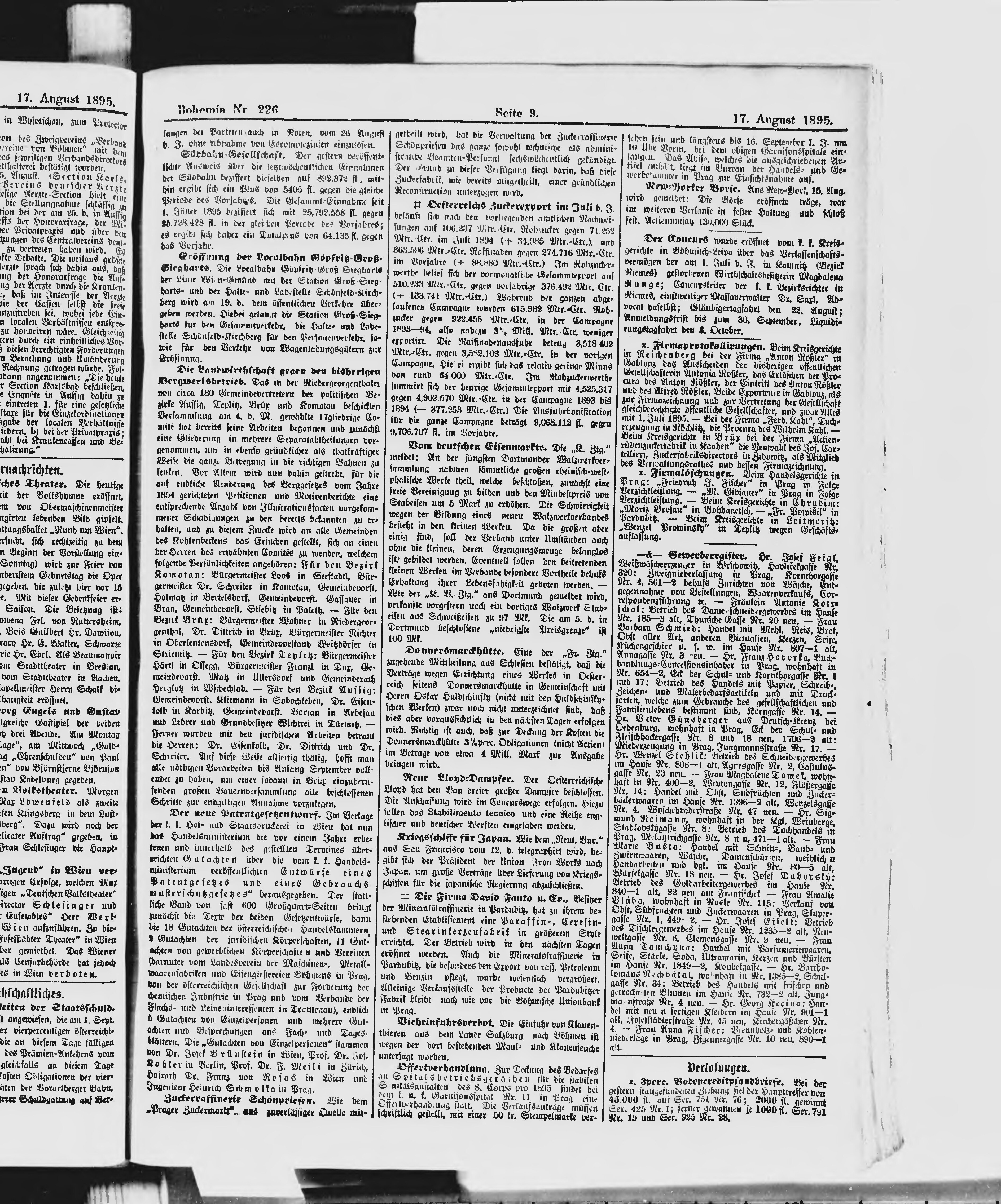 * Datum vydání výtisku: 17.8.1895 Číslo výtisku: 226