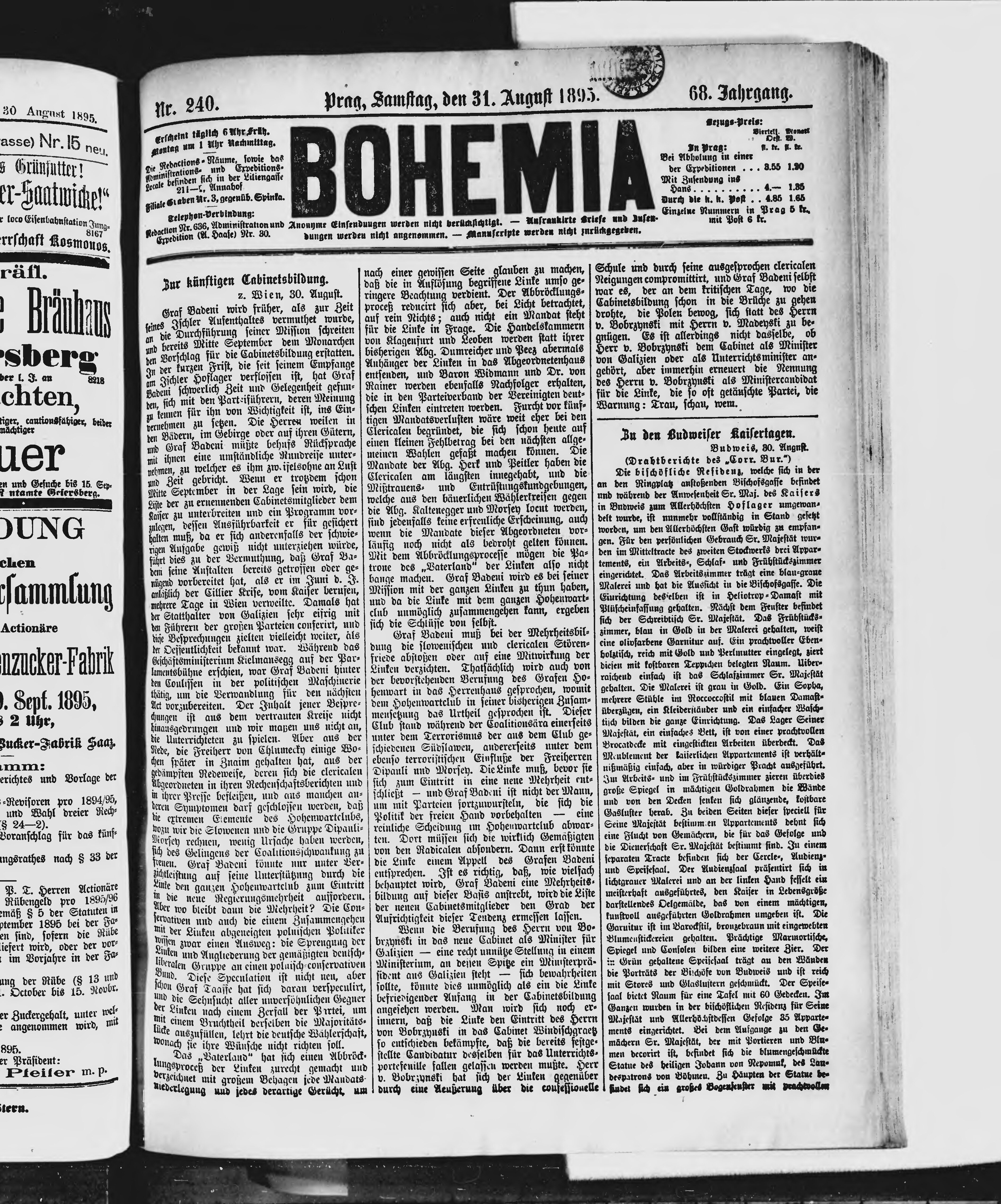 * Datum vydání výtisku: 31.8.1895 Číslo výtisku: 240