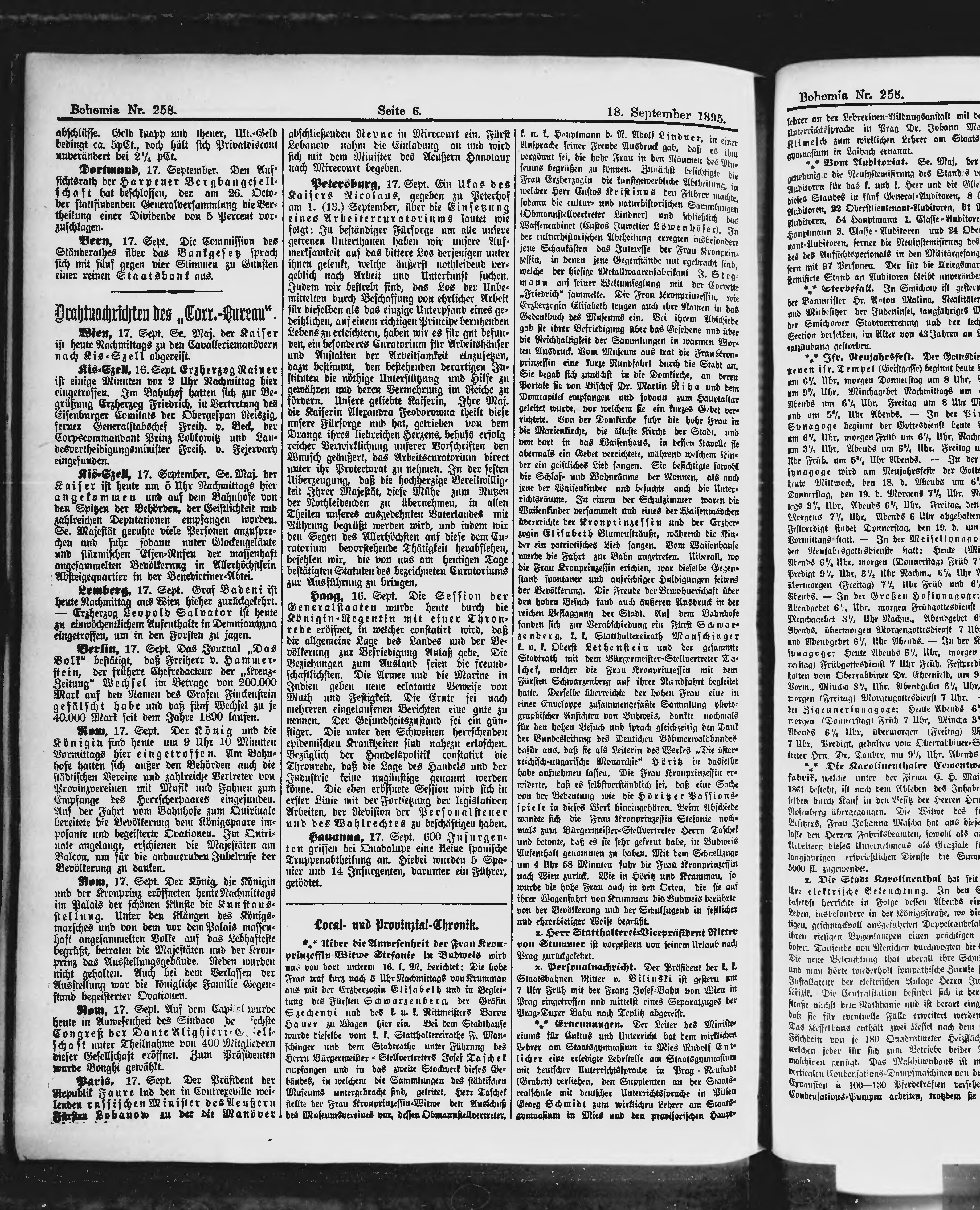 * Datum vydání výtisku: 18.9.1895 Číslo výtisku: 258