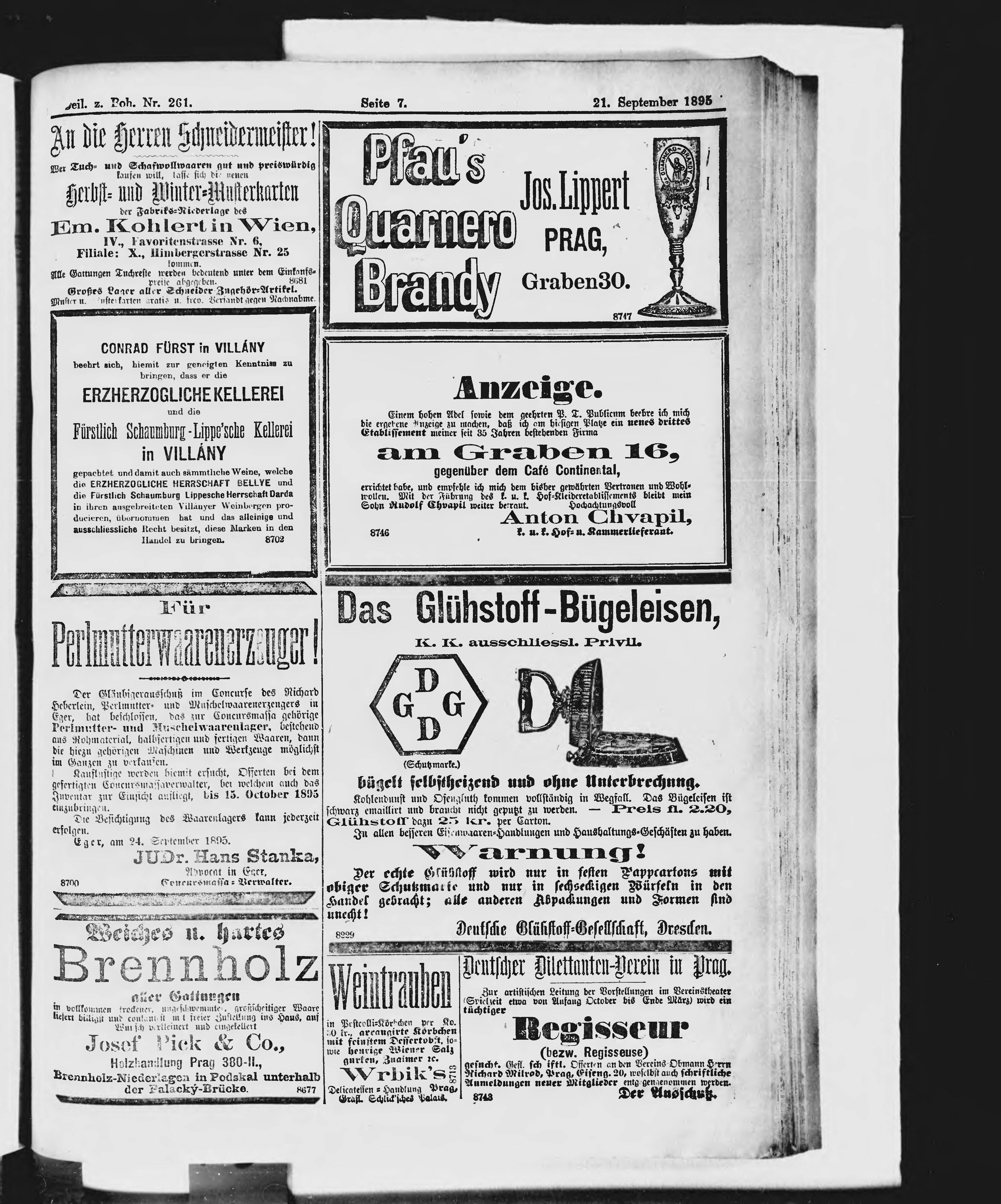* Datum vydání výtisku: 21.9.1895 Číslo výtisku: 261 Typ výtisku: příloha Poznámky k výtisku: příloha