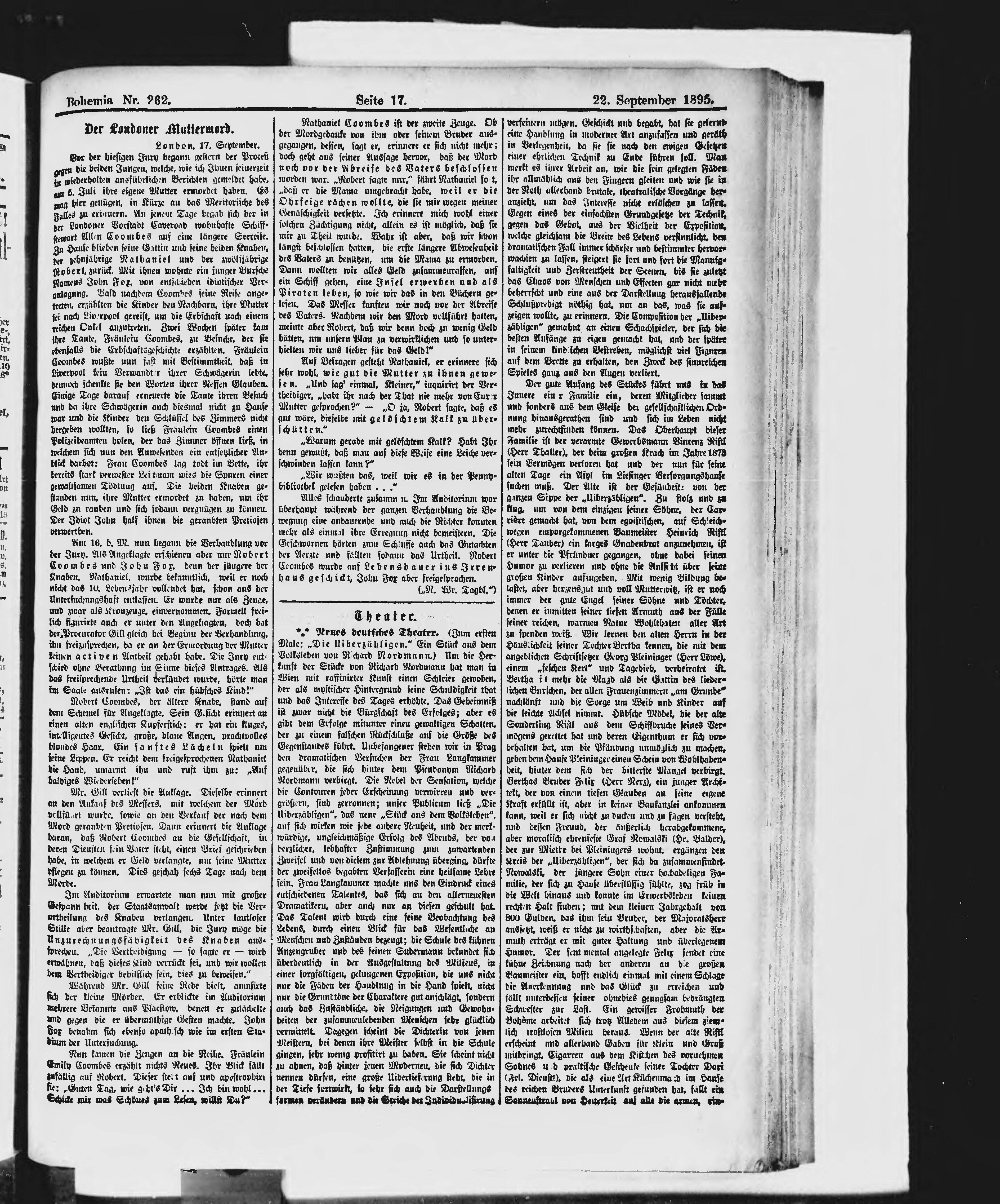 * Datum vydání výtisku: 22.9.1895 Číslo výtisku: 262