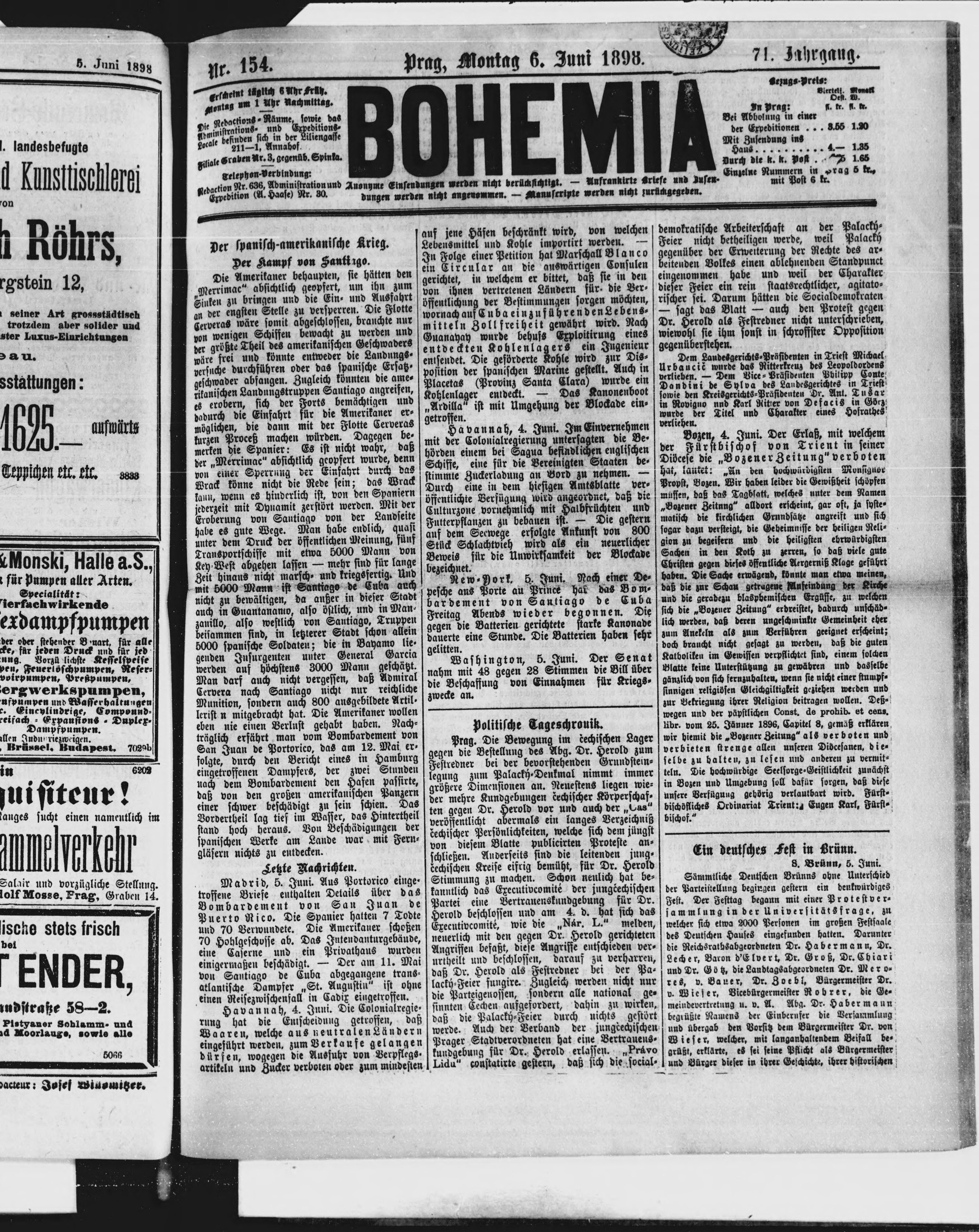 * Datum vydání výtisku: 6.6.1898 Číslo výtisku: 154